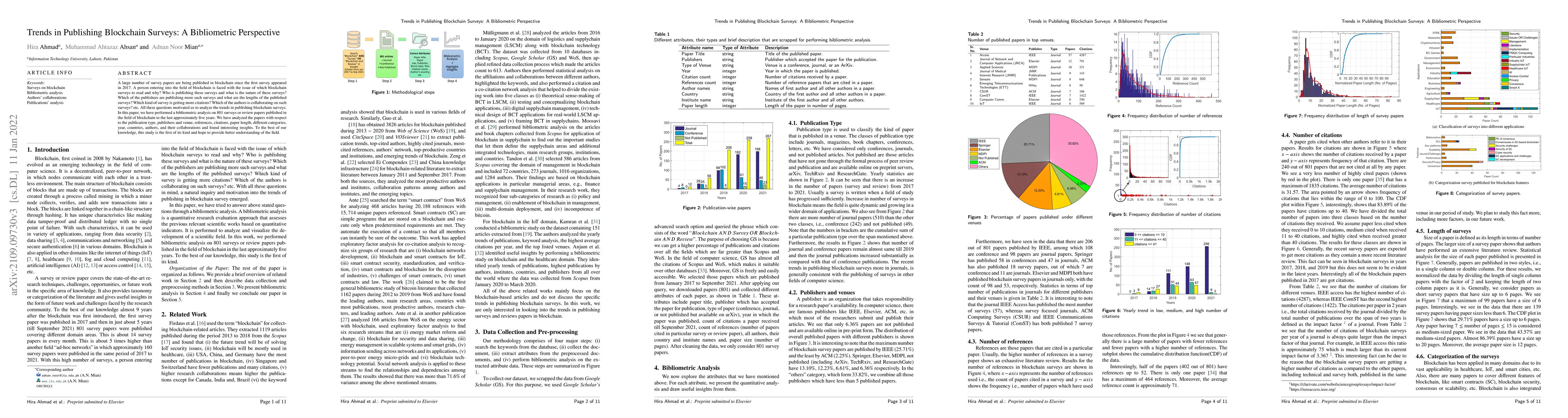 This paper conducts a comprehensive bibliometric analysis of 801 blockchain survey papers published over the last five years, examining trends in publication types, publishers, citations, paper lengths, and author collaborations to provide insights into the evolving landscape of blockchain research. The study aims to help new entrants navigate the field by identifying key trends and influential publications.
