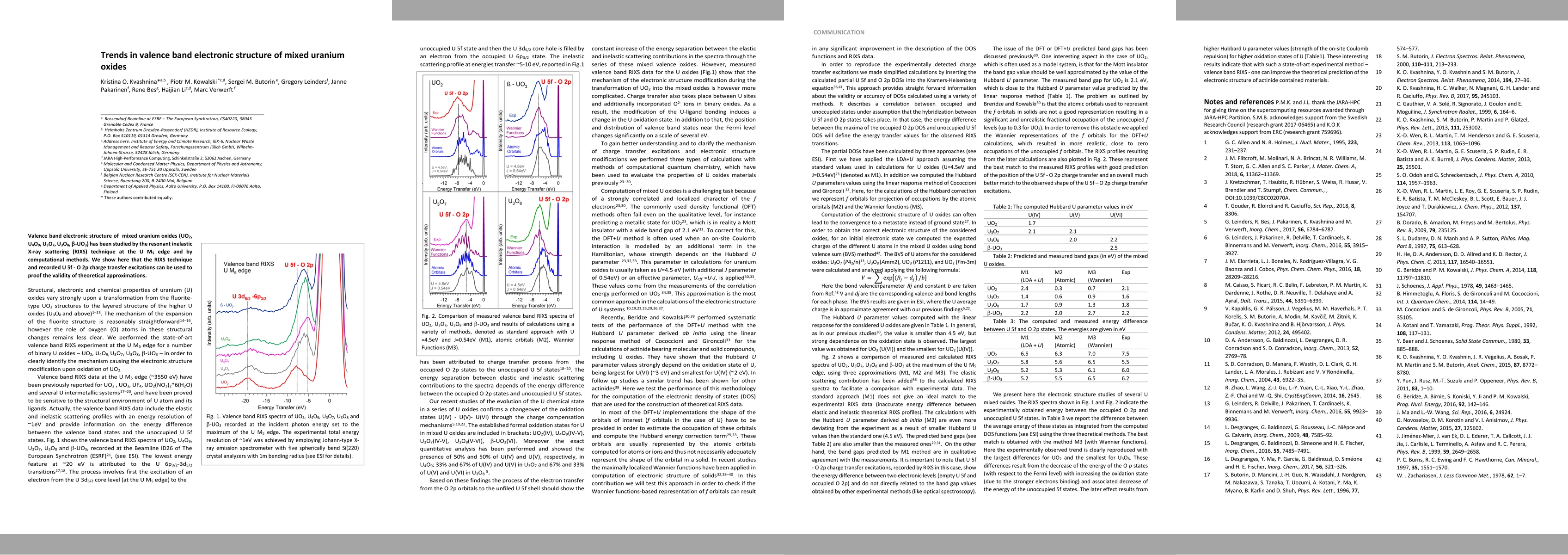This research uses resonant inelastic X-ray scattering (RIXS) to study valence band electronic structures of various uranium oxides. It validates theoretical approximations by analyzing U 5f-O 2p charge transfer excitations, contributing to understanding these complex materials.