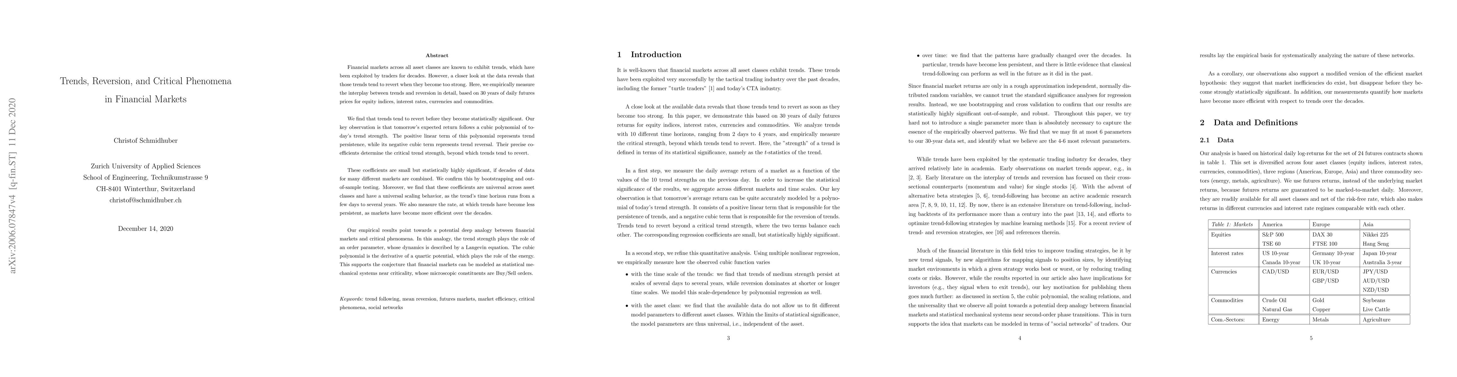 Financial markets across all asset classes are known to exhibit trends. These trends have been exploited by traders for decades. Here, we empirically measure when trends revert, based on 30 years of daily futures prices for equity indices, interest rates, currencies and commodities. We find that trends tend to revert once they reach a critical level of statistical significance. Based on polynomial regression, we carefully measure this critical level. We find that it is universal across asset classes and has a universal scaling behavior, as the trend's time horizon runs from a few days to several years. The corresponding regression coefficients are small, but statistically highly significant, as confirmed by bootstrapping and out-of-sample testing. Our results signal to investors when to exit a trend. They also reveal how markets have become more efficient over the decades. Moreover, they point towards a potential deep analogy between financial markets and critical phenomena: our analysis supports the conjecture that financial markets can be modeled as statistical mechanical ensembles of Buy/Sell orders near critical points. In this analogy, the trend strength plays the role of an order parameter, whose dynamcis is described by a Langevin equation with a quartic potential.