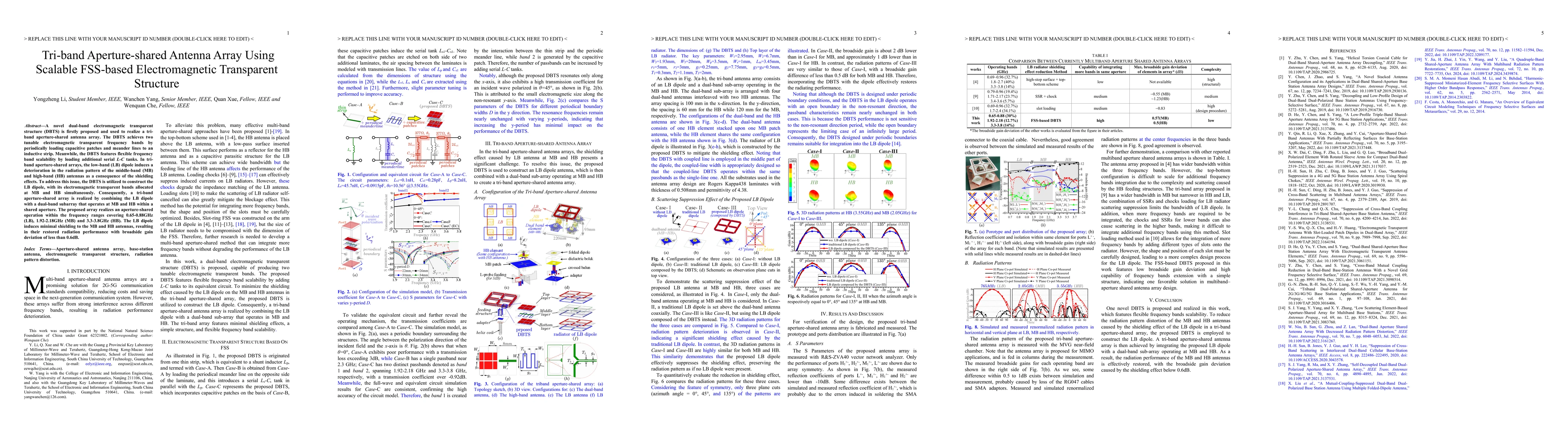 This work is novel due to its approach of using a scalable, electromagnetic transparent structure to address the shielding effects in tri-band aperture-shared arrays, thereby maintaining the radiation performance of middle- and high-band antennas.