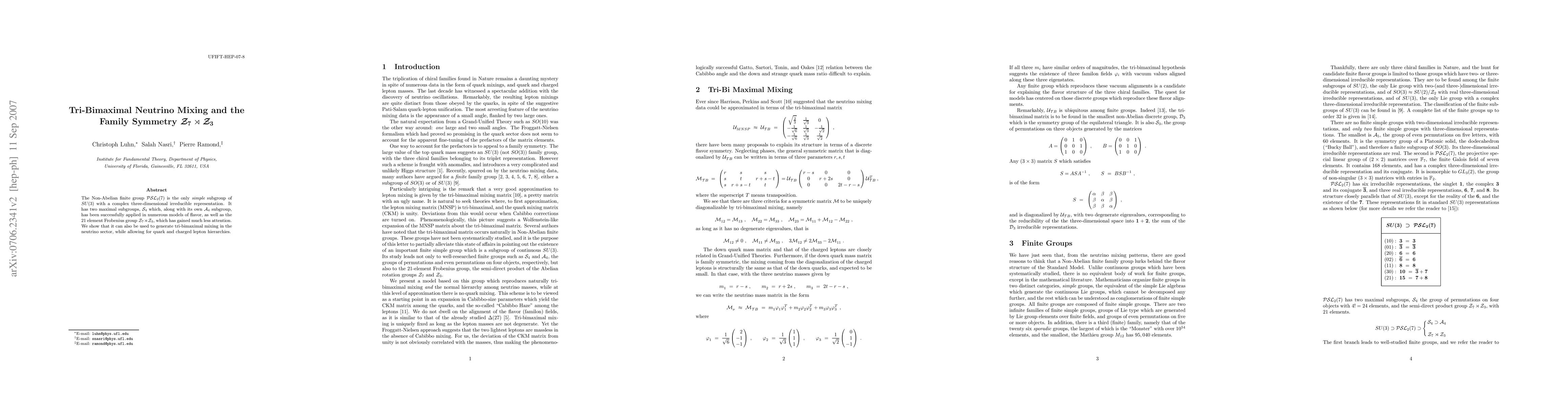 The Non-Abelian finite group PSL_2(7) is the only simple subgroup of SU(3) with a complex three-dimensional irreducible representation. It has two maximal subgroups, S_4 which, along with its own A_4 subgroup, has been successfully applied in numerous models of flavor, as well as the 21 element Frobenius group Z_7 x Z_3, which has gained much less attention. We show that it can also be used to generate tri-bimaximal mixing in the neutrino sector, while allowing for quark and charged lepton hierarchies.