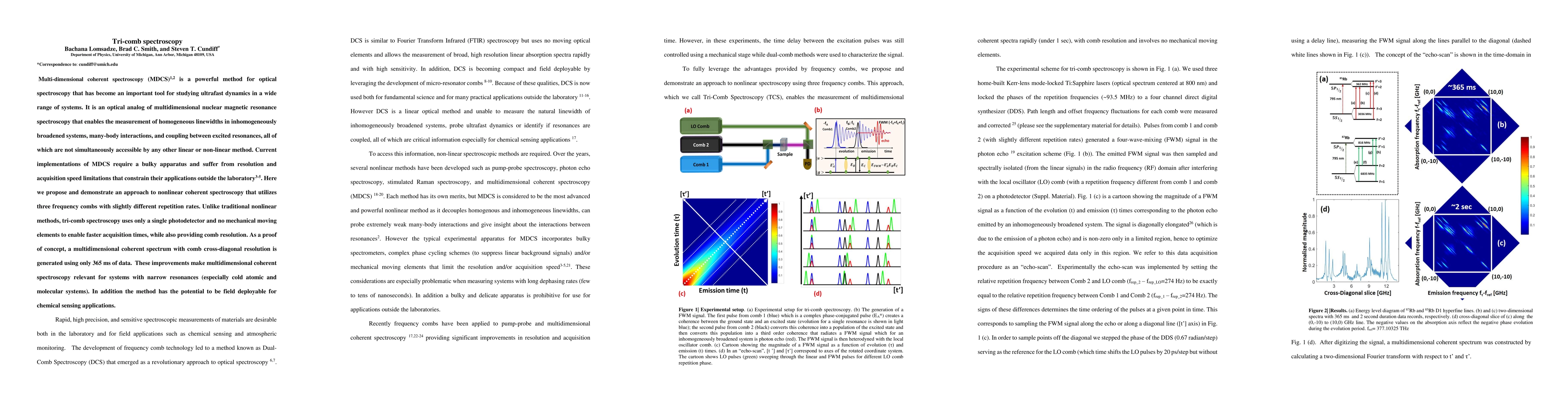 Researchers propose a new method for coherent spectroscopy called tri-comb spectroscopy, which enables faster acquisition times and comb resolution using three frequency combs with different repetition rates.