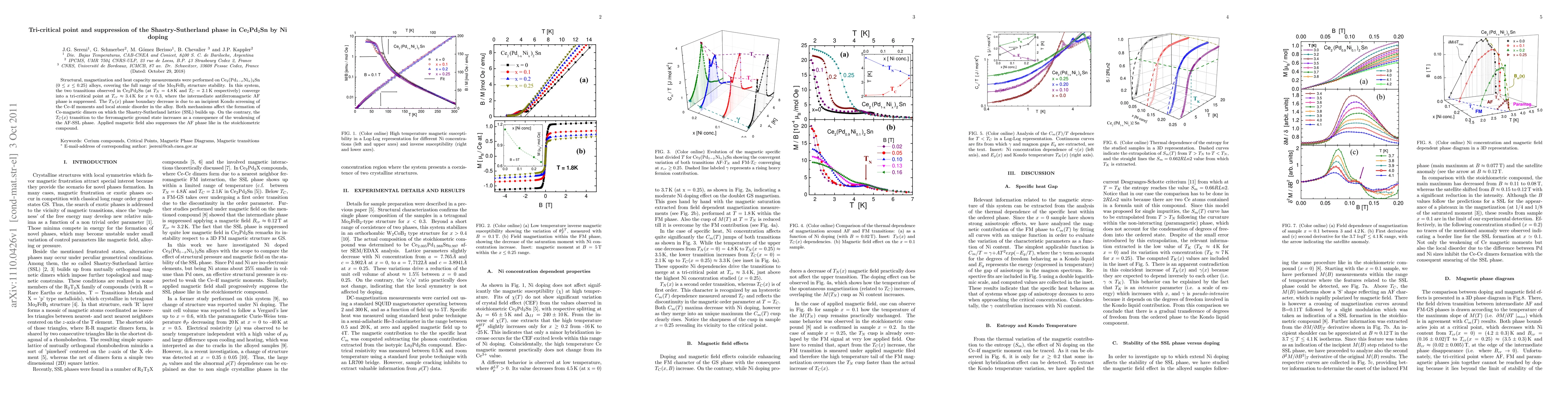 This study investigates Ce$_2$(Pd$_{1-x}$Ni$_x$)$_2$Sn alloys, revealing a tri-critical point at $T_{cr}\approx 3.4$\,K where two transitions in Ce$_2$Pd$_2$Sn converge, suppressing the intermediate antiferromagnetic phase. Ni doping induces a Kondo effect and atomic disorder, impacting Ce-magnetic dimers and reducing the Shastry-Sutherland phase, while enhancing the ferromagnetic transition.