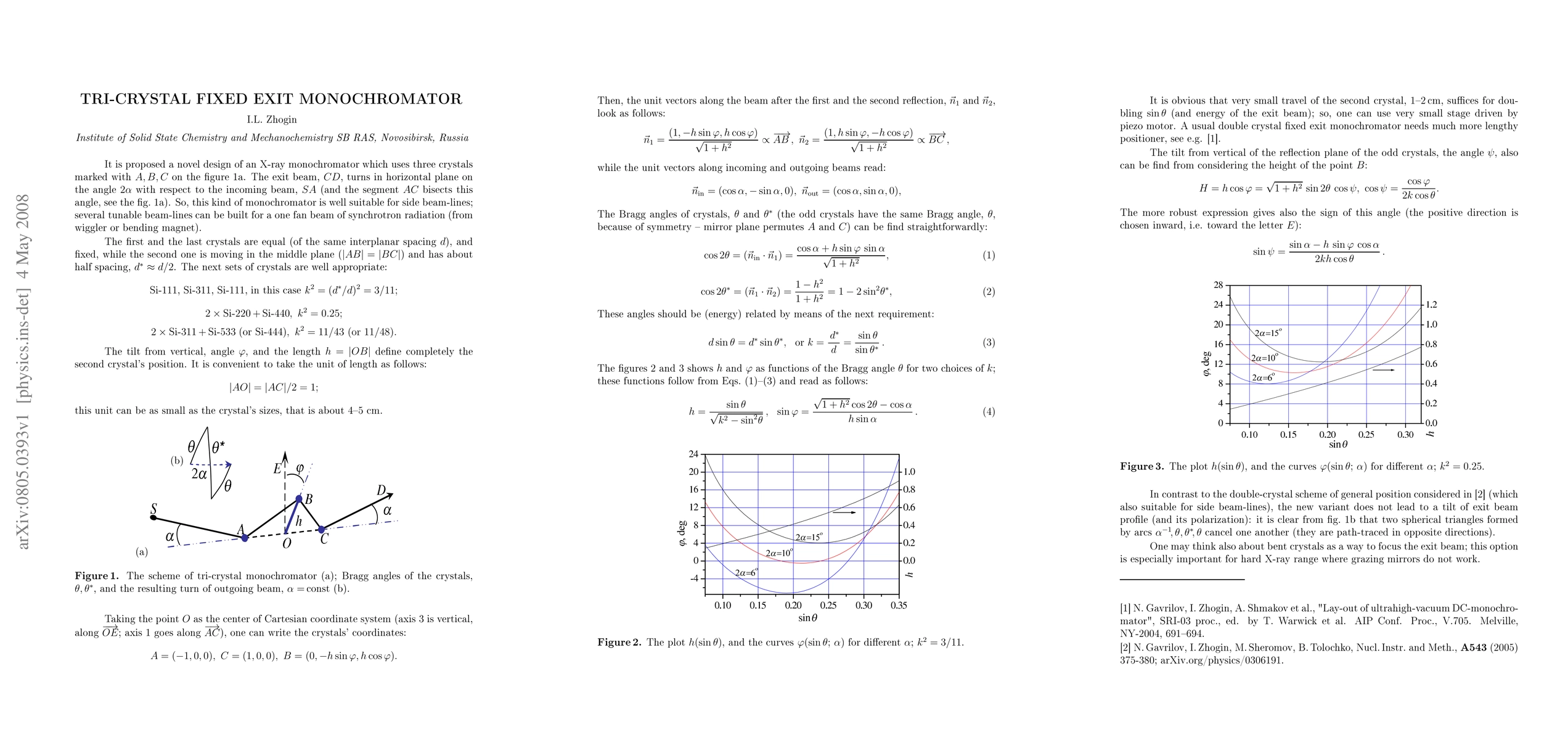 Researchers propose a novel X-ray monochromator design using three crystals to achieve tunable beam-lines for side beam-lines without tilting the exit beam profile.