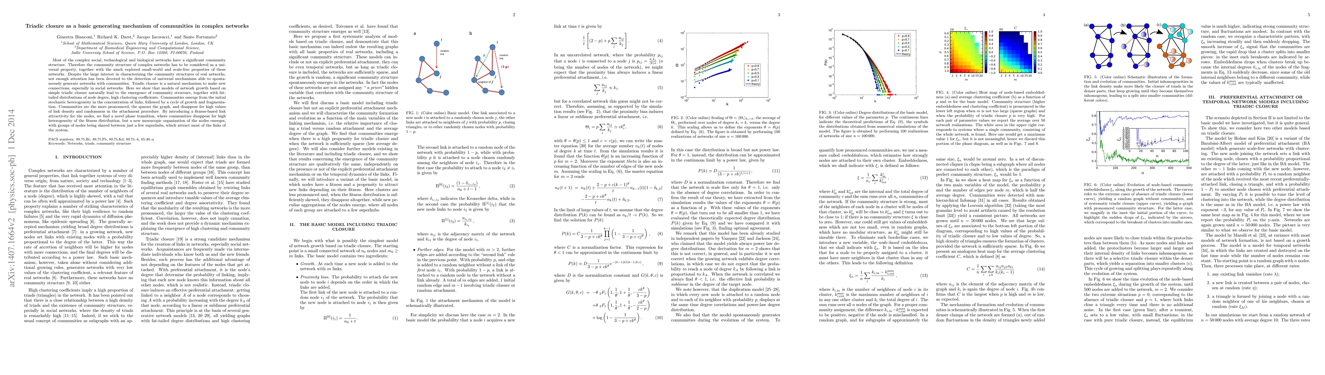 This paper explores how triadic closure—the tendency for individuals to form a closed triangle of mutual connections—serves as a fundamental mechanism for generating community structures in complex networks. The study finds that models based on triadic closure naturally produce communities, along with other characteristics like high clustering and degree distribution, especially in sparse networks.