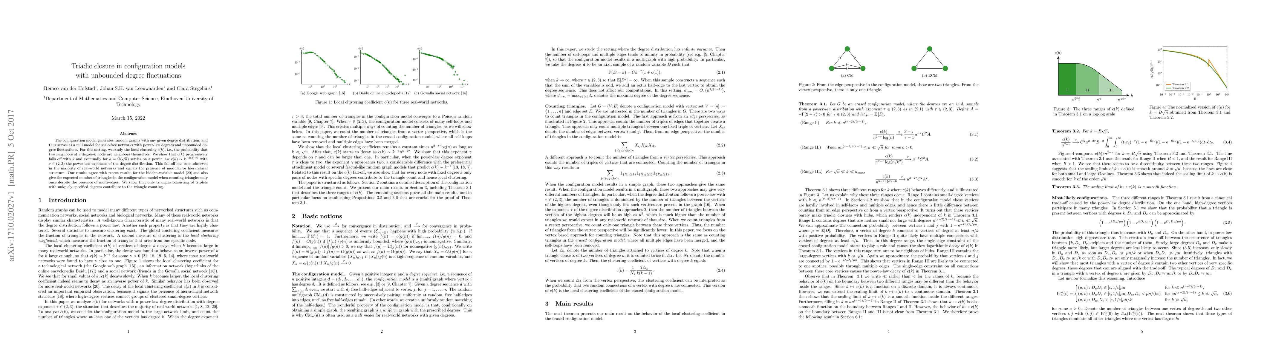 The configuration model generates random graphs with any given degree distribution, and thus serves as a null model for scale-free networks with power-law degrees and unbounded degree fluctuations. For this setting, we study the local clustering $c(k)$, i.e., the probability that two neighbors of a degree-$k$ node are neighbors themselves. We show that $ c(k)$ progressively falls off with $k$ and eventually for $k=\Omega(\sqrt{n})$ settles on a power law $c(k)\sim k^{-2(3-\tau)}$ with $\tau\in(2,3)$ the power-law exponent of the degree distribution. This fall-off has been observed in the majority of real-world networks and signals the presence of modular or hierarchical structure. Our results agree with recent results for the hidden-variable model and also give the expected number of triangles in the configuration model when counting triangles only once despite the presence of multi-edges. We show that only triangles consisting of triplets with uniquely specified degrees contribute to the triangle counting.