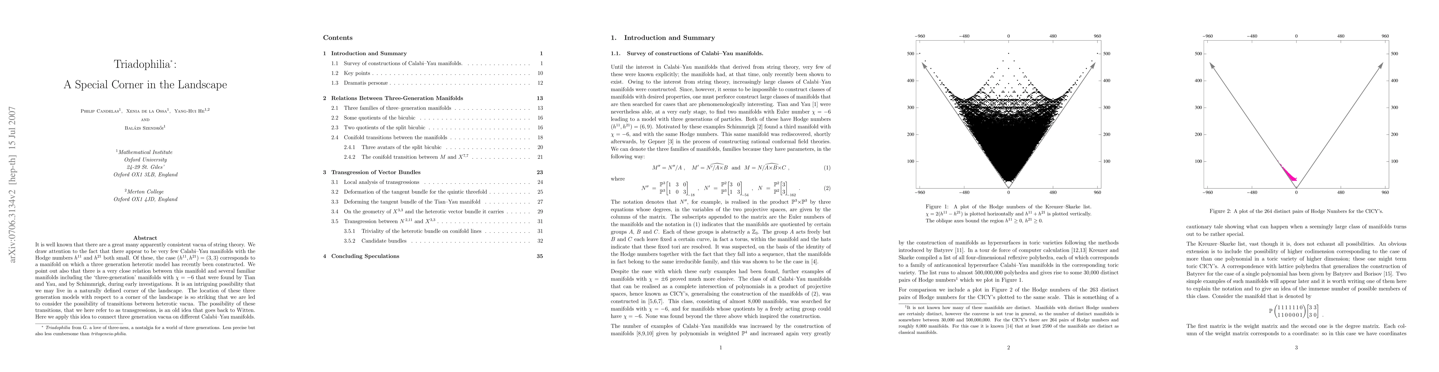 It is well known that there are a great many apparently consistent vacua of string theory. We draw attention to the fact that there appear to be very few Calabi--Yau manifolds with the Hodge numbers h^{11} and h^{21} both small. Of these, the case (h^{11}, h^{21})=(3,3) corresponds to a manifold on which a three generation heterotic model has recently been constructed. We point out also that there is a very close relation between this manifold and several familiar manifolds including the `three-generation' manifolds with \chi=-6 that were found by Tian and Yau, and by Schimmrigk, during early investigations. It is an intriguing possibility that we may live in a naturally defined corner of the landscape. The location of these three generation models with respect to a corner of the landscape is so striking that we are led to consider the possibility of transitions between heterotic vacua. The possibility of these transitions, that we here refer to as transgressions, is an old idea that goes back to Witten. Here we apply this idea to connect three generation vacua on different Calabi-Yau manifolds.