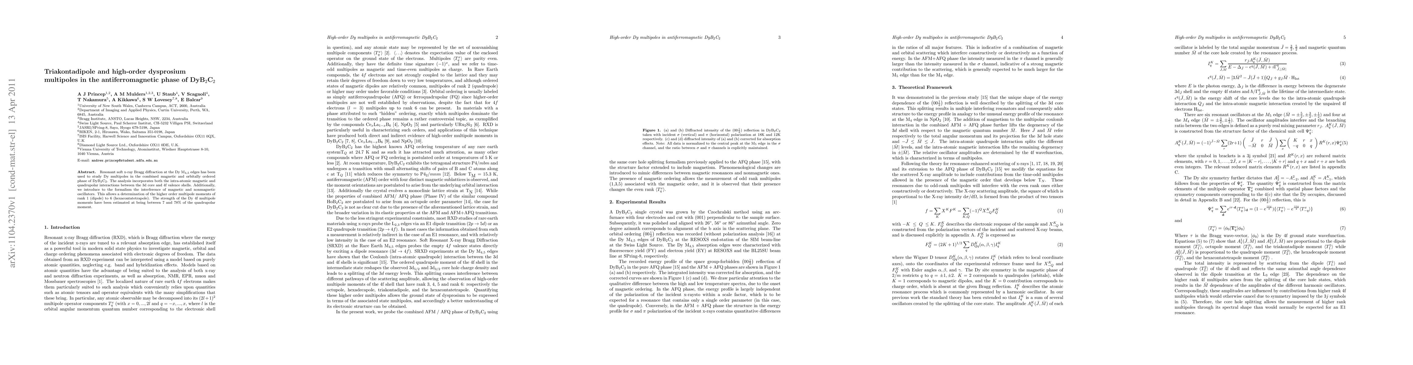 Resonant soft x-ray Bragg diffraction at the Dy M$_{4,5}$ edges has been used to study Dy multipoles in the combined magnetic and orbitally ordered phase of DyB$_2$C$_2$. The analysis incorporates both the intra-atomic magnetic and quadrupolar interactions between the 3d core and 4f valence shells. Additionally, we introduce to the formalism the interference of magnetic and nonmagnetic oscillators. This allows a determination of the higher order multipole moments of rank 1 (dipole) to 6 (hexacontatetrapole). The strength of the Dy 4f multipole moments have been estimated at being between 7 and 78 % of the quadrupolar moment.