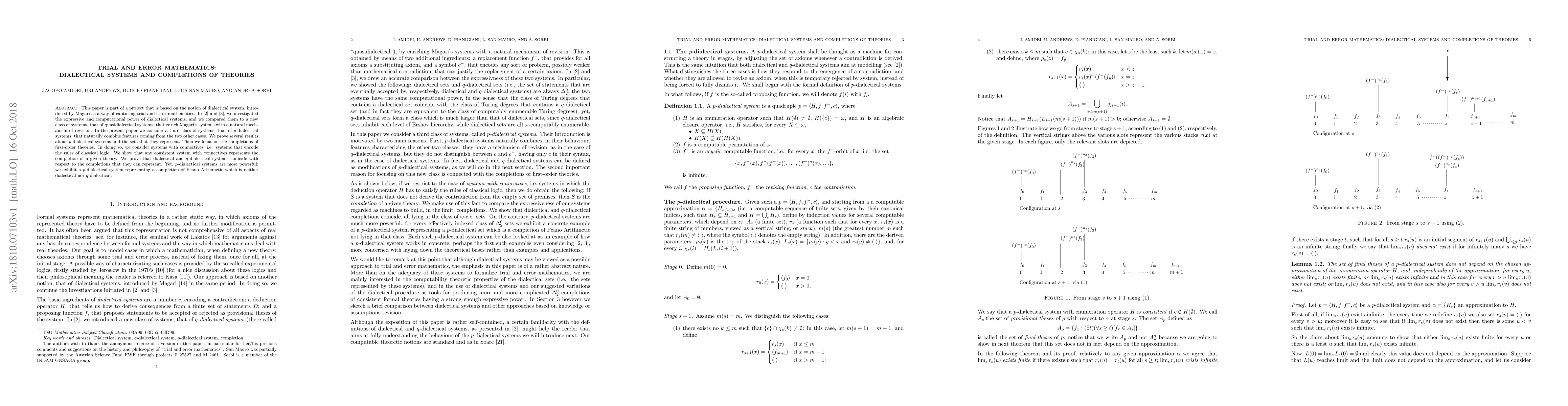 This paper is part of a project that is based on the notion of dialectical system, introduced by Magari as a way of capturing trial and error mathematics. In previous work, we investigated the expressive and computational power of dialectical systems, and we compared them to a new class of systems, that of quasidialectical systems, that enrich Magari's systems with a natural mechanism of revision. In the present paper we consider a third class of systems, that of $p$-dialectical systems, that naturally combine features coming from the two other cases. We prove several results about $p$-dialectical systems and the sets that they represent. Then we focus on the completions of first-order theories. In doing so, we consider systems with connectives, i.e. systems that encode the rules of classical logic. We show that any consistent system with connectives represents the completion of a given theory. We prove that dialectical and $q$-dialectical systems coincide with respect to the completions that they can represent. Yet, $p$-dialectical systems are more powerful: we exhibit a $p$-dialectical system representing a completion of Peano Arithmetic which is neither dialectical nor $q$-dialectical.