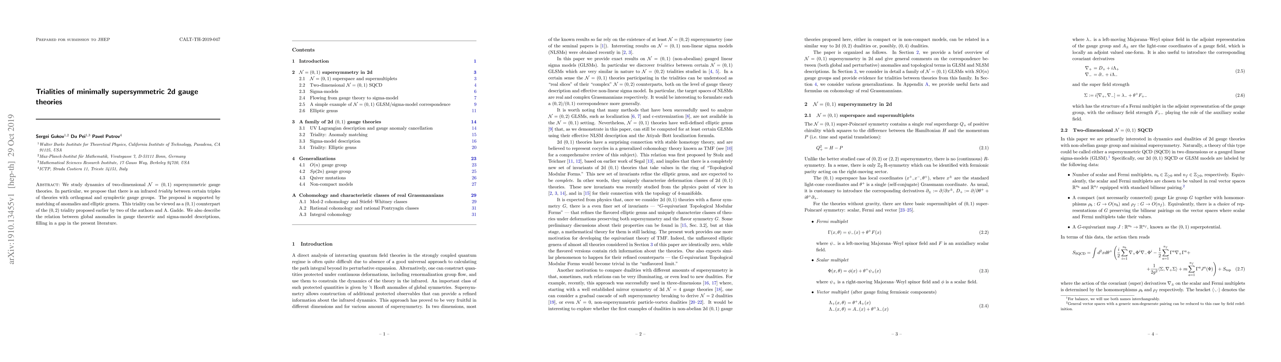 This paper investigates the dynamics of two-dimensional N=(0,1) supersymmetric gauge theories, proposing an infrared triality among triples of theories with orthogonal and symplectic gauge groups, supported by anomaly and elliptic genus matching. It also clarifies the relationship between global anomalies in gauge theories and sigma-model descriptions.