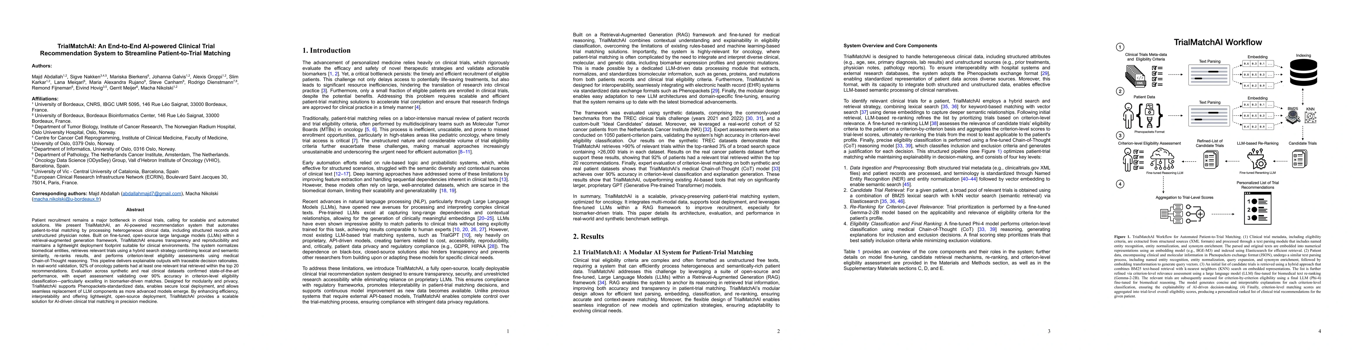 TrialMatchAI is an AI-powered clinical trial recommendation system that automates patient-to-trial matching with high accuracy, offering a scalable solution for efficient and interpretable trial matching in precision medicine.