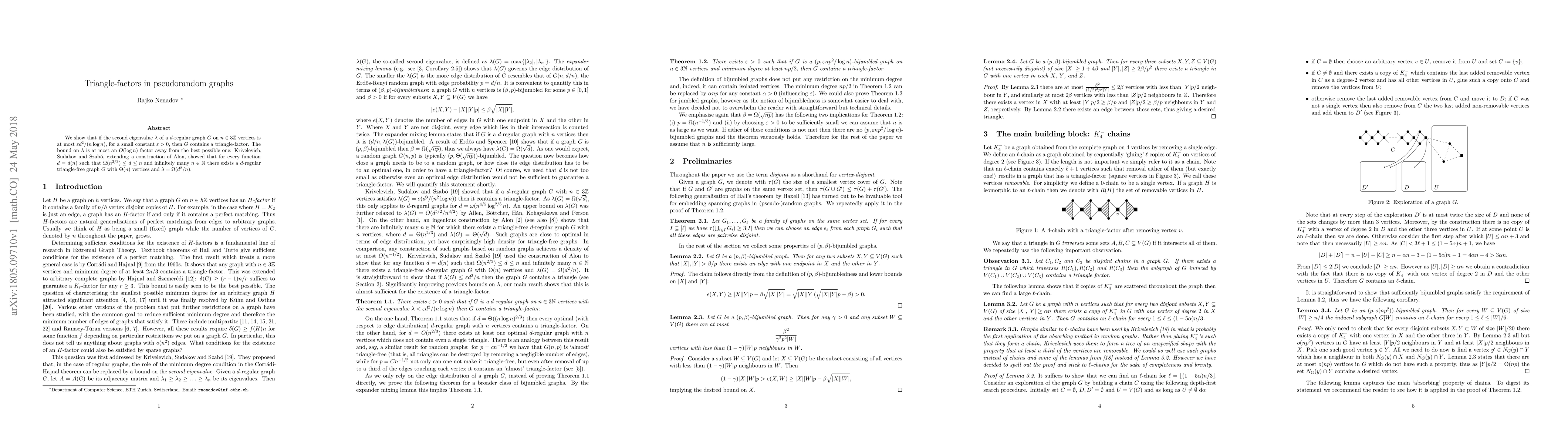 We show that if the second eigenvalue $\lambda$ of a $d$-regular graph $G$ on $n \in 3 \mathbb{Z}$ vertices is at most $\varepsilon d^2/(n \log n)$, for a small constant $\varepsilon > 0$, then $G$ contains a triangle-factor. The bound on $\lambda$ is at most an $O(\log n)$ factor away from the best possible one: Krivelevich, Sudakov and Szab\'o, extending a construction of Alon, showed that for every function $d = d(n)$ such that $\Omega(n^{2/3}) \le d \le n$ and infinitely many $n \in \mathbb{N}$ there exists a $d$-regular triangle-free graph $G$ with $\Theta(n)$ vertices and $\lambda = \Omega(d^2 / n)$.