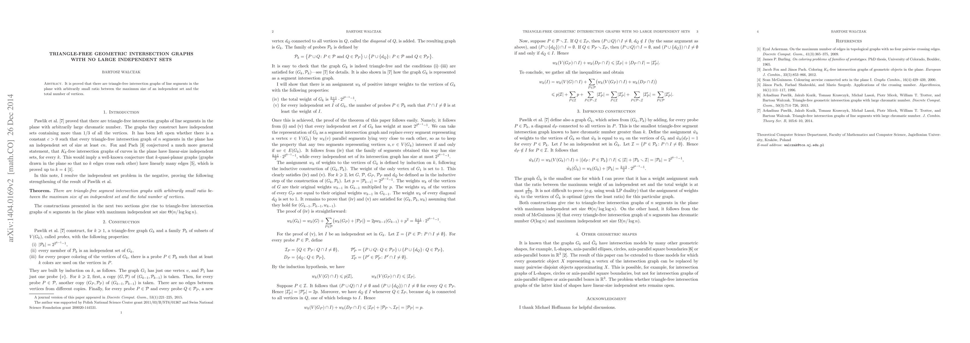 Summary: This paper demonstrates that triangle-free geometric intersection graphs formed by line segments in the plane can have an arbitrarily small ratio between the largest independent set size and the total number of vertices. This implies the existence of such graphs with minimal independent set sizes relative to their vertex counts.