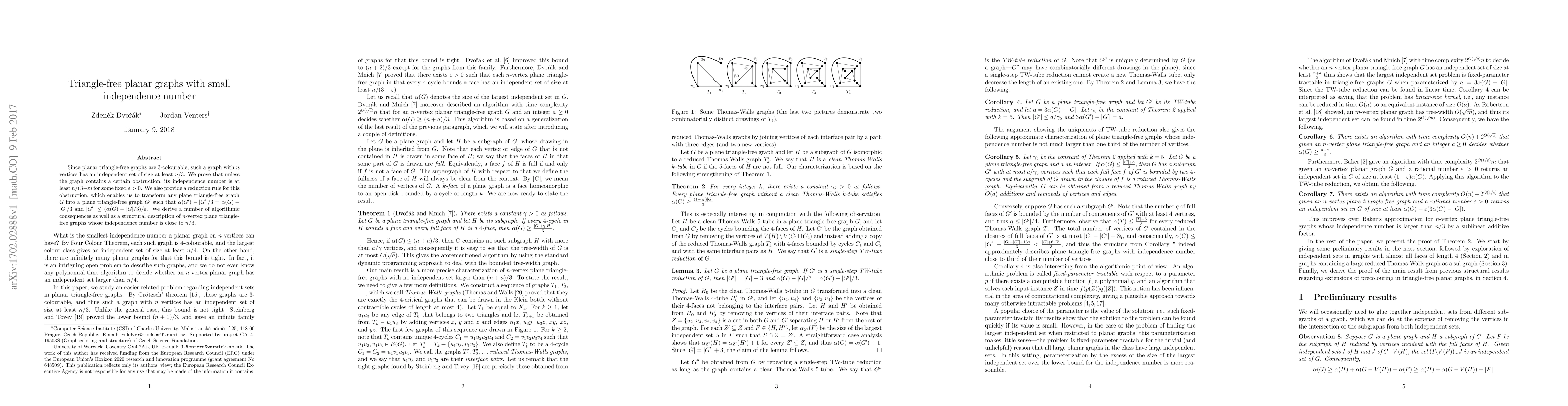 This paper proves that for triangle-free planar graphs, unless a specific obstruction exists, the independence number is at least n/(3-epsilon) for some epsilon > 0. It also introduces a reduction rule to transform such graphs while preserving the independence number relative to the vertex count.
