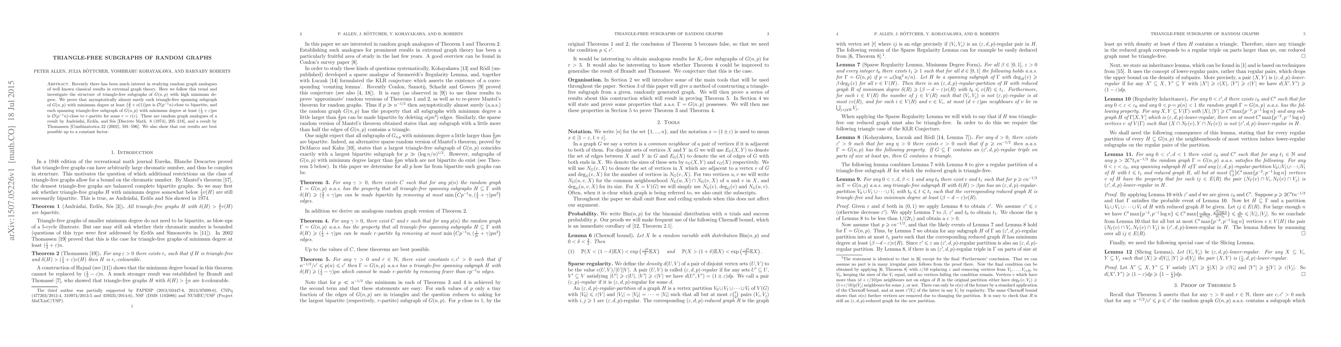 This paper investigates triangle-free subgraphs in random graphs $G(n,p)$ with high minimum degree, proving that such subgraphs are close to bipartite or $r$-partite structures. The results extend classical theorems by Andr\'asfai, Erd\H{o}s, and S\'os, and Thomassen to the random graph setting.