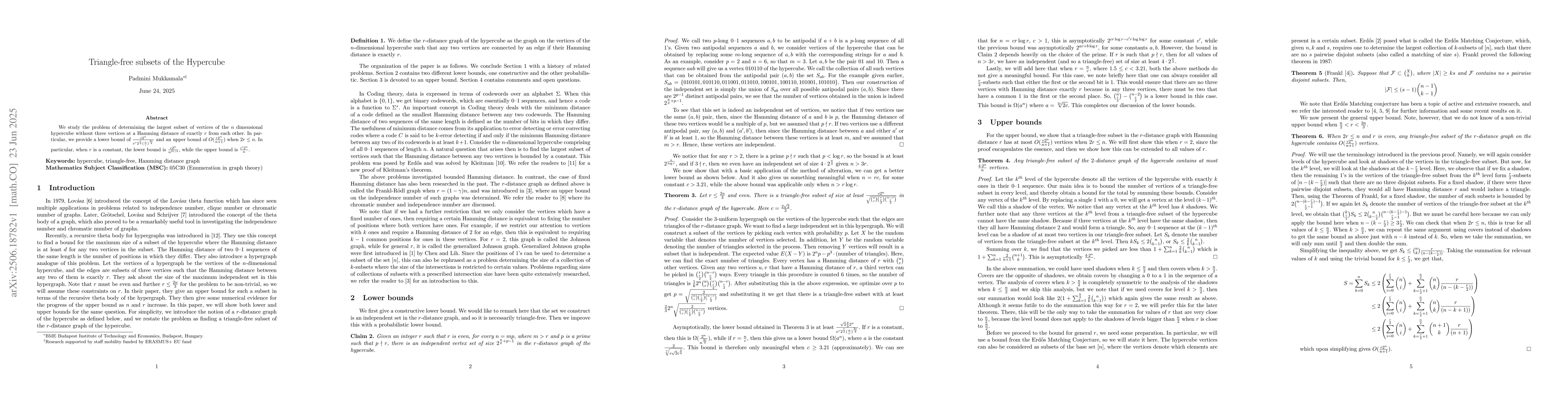 We study the problem of determining the largest subset of vertices of the $n$ dimensional hypercube without three vertices at a Hamming distance of exactly $r$ from each other. In particular, we provide a lower bound of $\frac{c2^n}{e^r2^{\frac r2} (\frac nr)^{\frac{3r}{4}}}$ and an upper bound of $O(\frac{r2^n}{n+1})$ when $2r \le n$. In particular, when $r$ is a constant, the lower bound is $\frac{c2^n}{n^{3r/4}}$, while the upper bound is $\frac{c'2^n}{n}$.