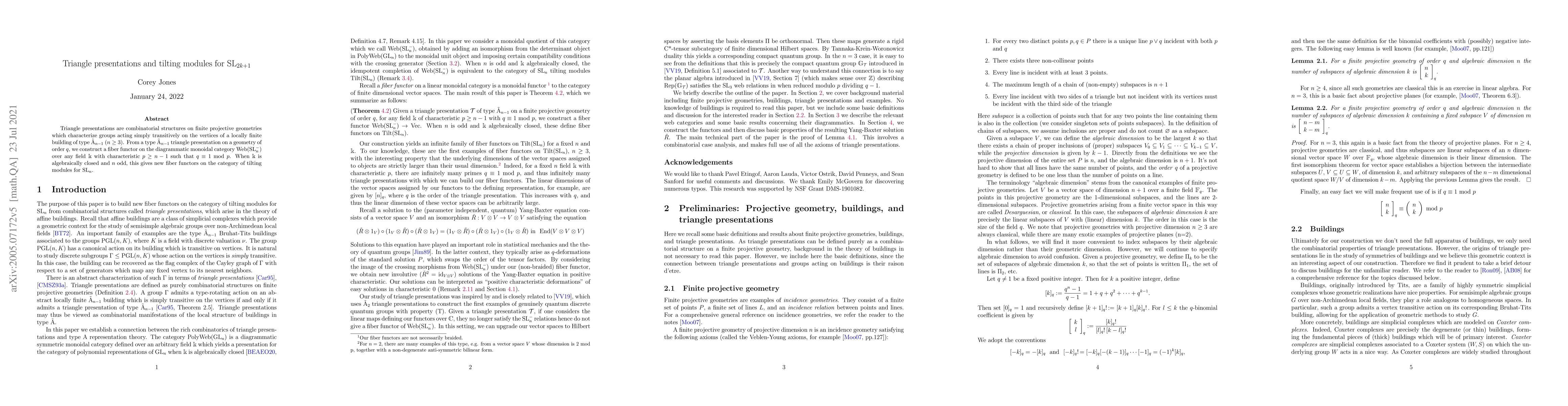 Triangle presentations are combinatorial structures on finite projective geometries which characterize groups acting simply transitively on the vertices of a locally finite building of type $\tilde{\text{A}}_{n-1}$ ($n\ge3$). From a type $\tilde{\text{A}}_{n-1}$ triangle presentation on a geometry of order $q$, we construct a fiber functor on the diagrammatic monoidal category $\text{Web}(\text{SL}^{-}_{n})$ over any field $\mathbb{k}$ with characteristic $p\ge n-1$ such that $q \equiv 1$ mod $p$. When $\mathbb{k}$ is algebraically closed and $n$ odd, this gives new fiber functors on the category of tilting modules for $\text{SL}_{n}$.