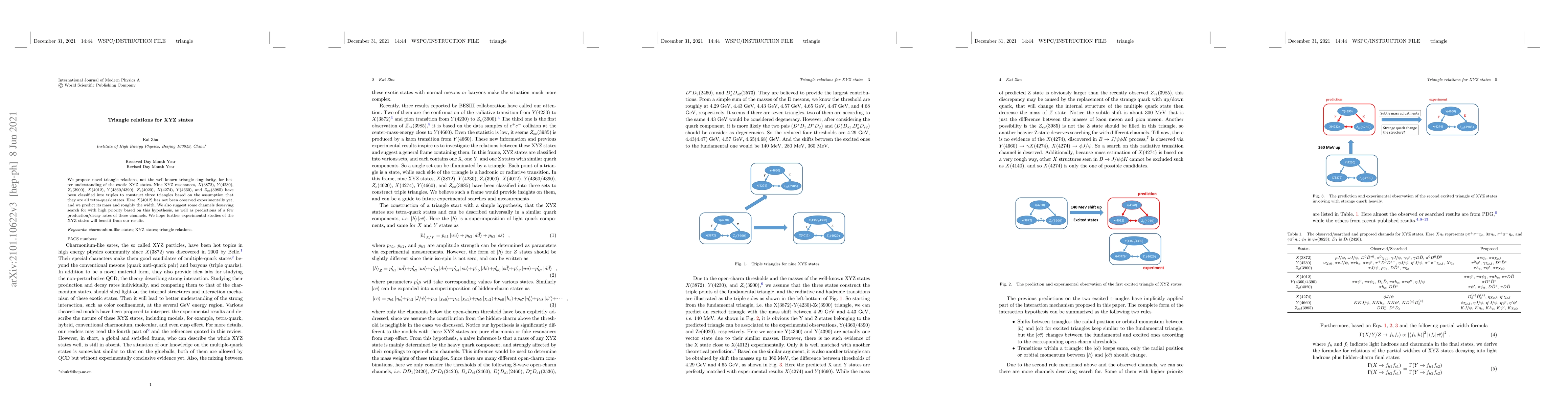 Researchers propose novel triangle relations to better understand exotic XYZ states, suggesting three new triangles based on tetra-quark state hypothesis and prioritizing channels for high-priority experimental searches.