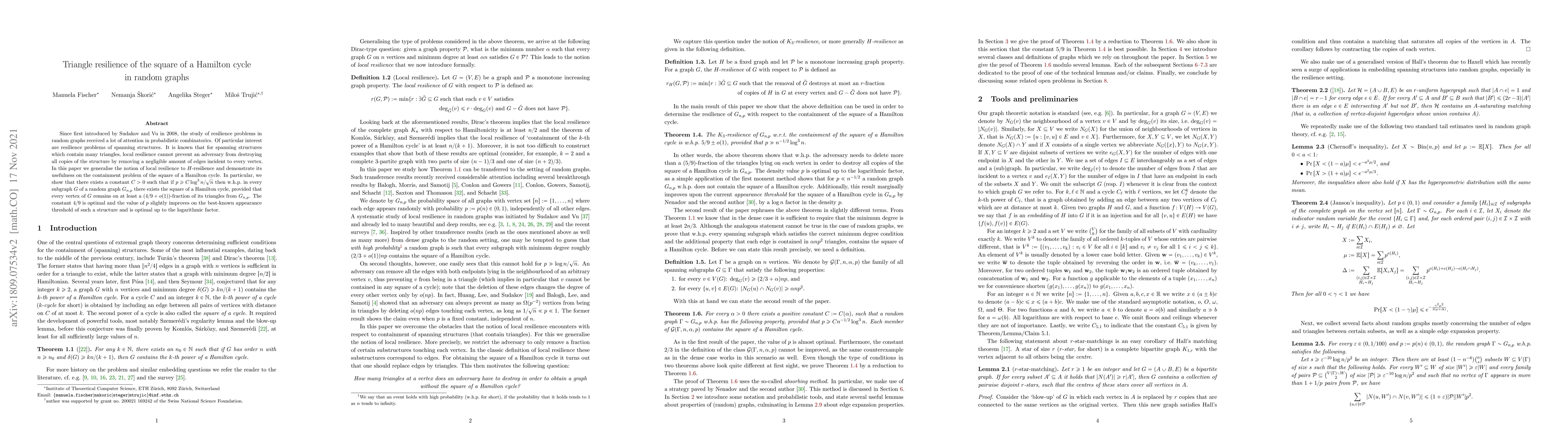 Researchers show that in random graphs, a square of a Hamilton cycle can exist as long as most vertices retain a significant fraction of their triangles, with an optimal threshold for the graph density.