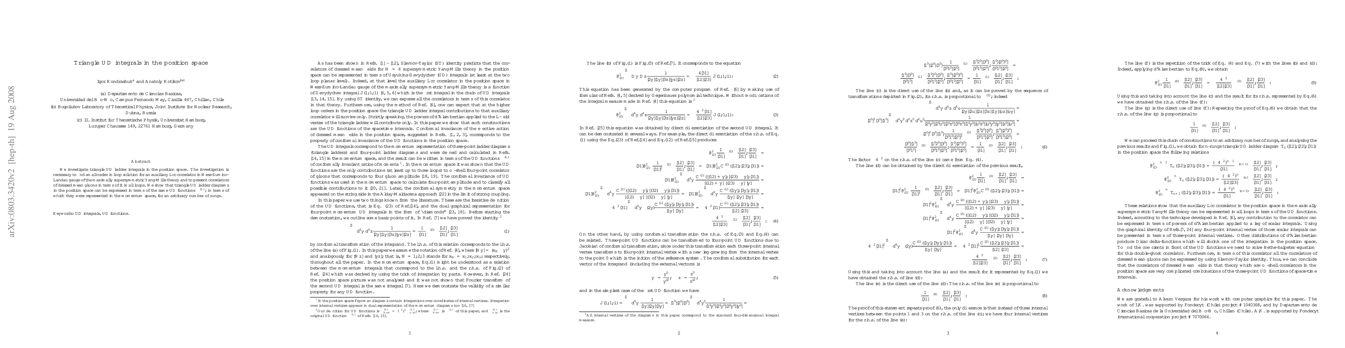We investigate triangle UD ladder integrals in the position space. The investigation is necessary to find an all-order in loop solution for an auxiliary Lcc correlator in Wess-Zumino-Landau gauge of the maximally supersymmetric Yang-Mills theory and to present correlators of dressed mean gluons in terms of it in all loops. We show that triangle UD ladder diagrams in the position space can be expressed in terms of the same UD functions Phi^(L) in terms of which they were represented in the momentum space, for an arbitrary number of rungs.
