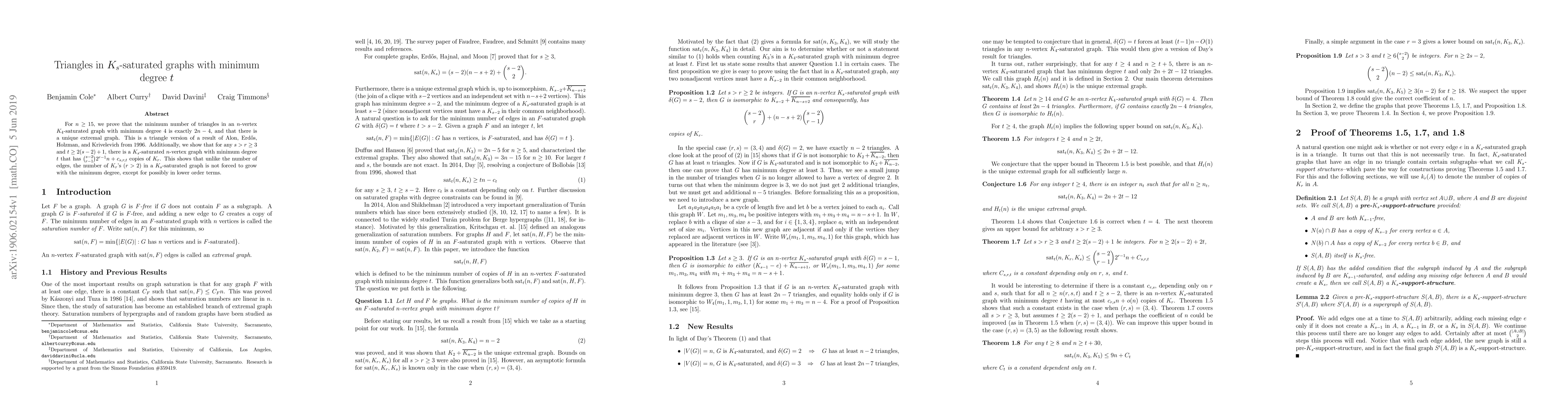 This paper proves that for $n \geq 15$, the minimum number of triangles in an $n$-vertex $K_4$-saturated graph with minimum degree 4 is exactly $2n-4$, with a unique extremal graph. It also shows that the number of $K_r$ subgraphs in a $K_s$-saturated graph does not necessarily increase with minimum degree, except for lower order terms.
