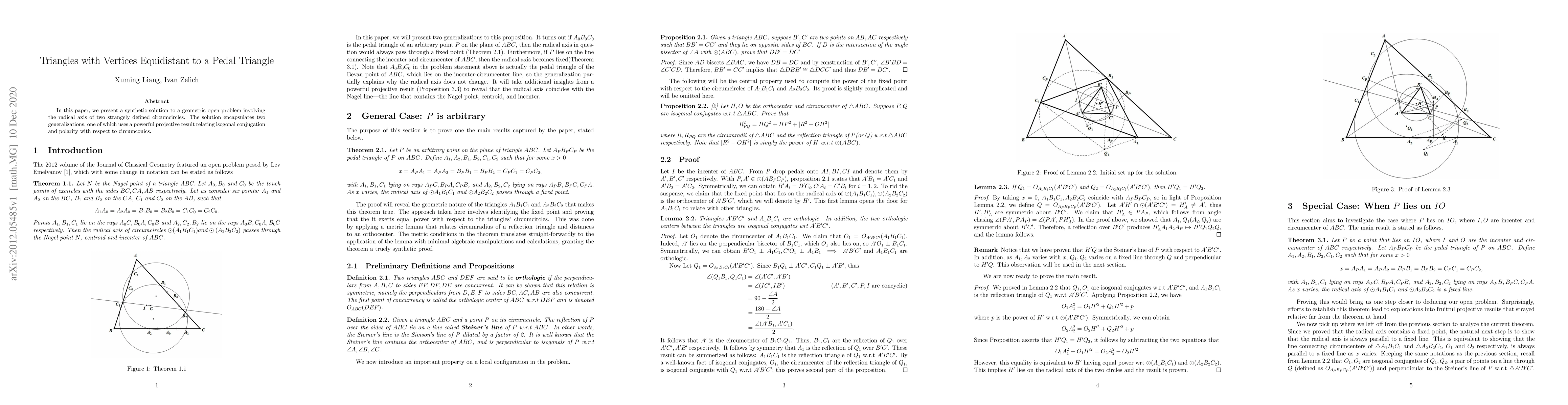 In this paper, we present a synthetic solution to a geometric open problem involving the radical axis of two strangely defined circumcircles. The solution encapsulates two generalizations, one of which uses a powerful projective result relating isogonal conjugation and polarity with respect to circumconics.