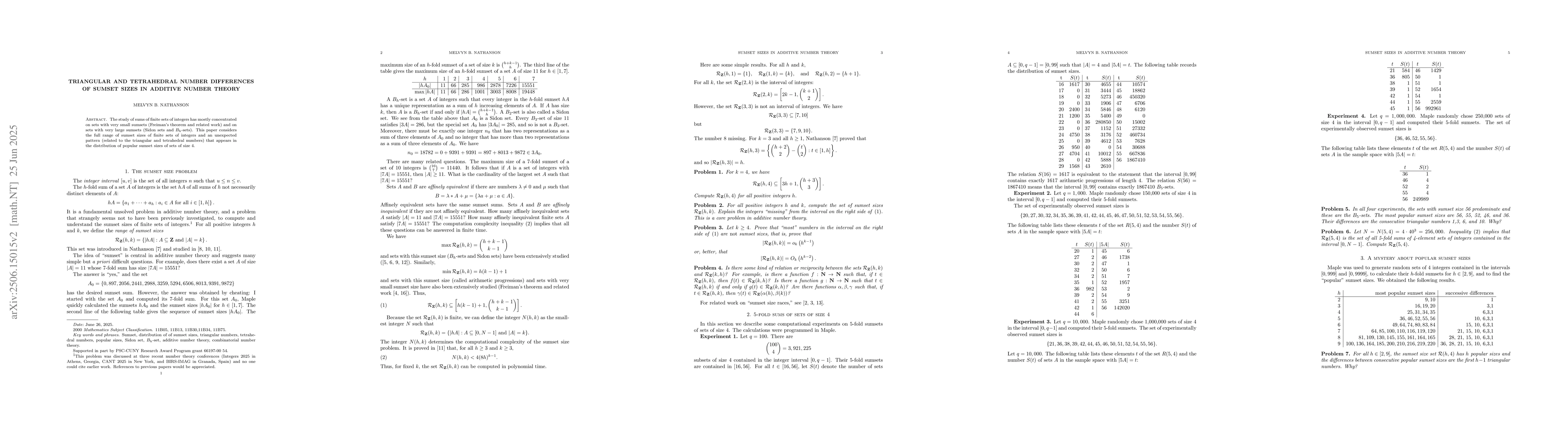 The study of sums of finite sets of integers has mostly concentrated on sets with very small sumsets (Freiman's theorem and related work) and on sets with very large sumsets (Sidon sets and $B_h$-sets). This paper considers the full range of sumset sizes of finite sets of integers and an unexpected pattern (related to the triangular and tetrahedral numbers) that appears in the distribution of popular sumset sizes of sets of size 4.