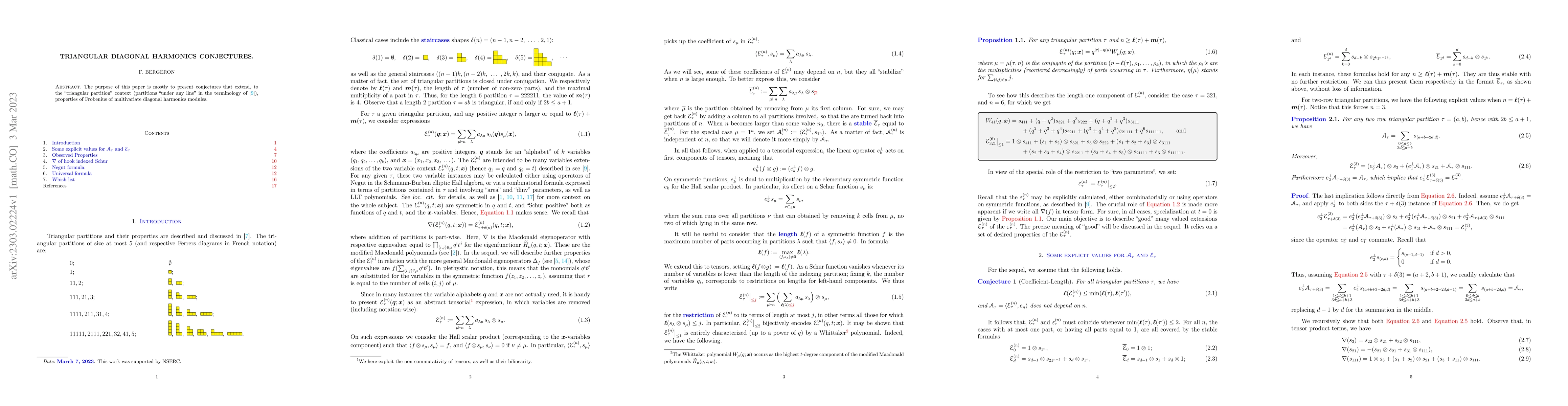 This paper proposes conjectures extending properties of multivariate diagonal harmonics modules to the "triangular partition" context, aiming to explore the Frobenius characteristics within this new framework. These conjectures seek to deepen the understanding of these mathematical structures.