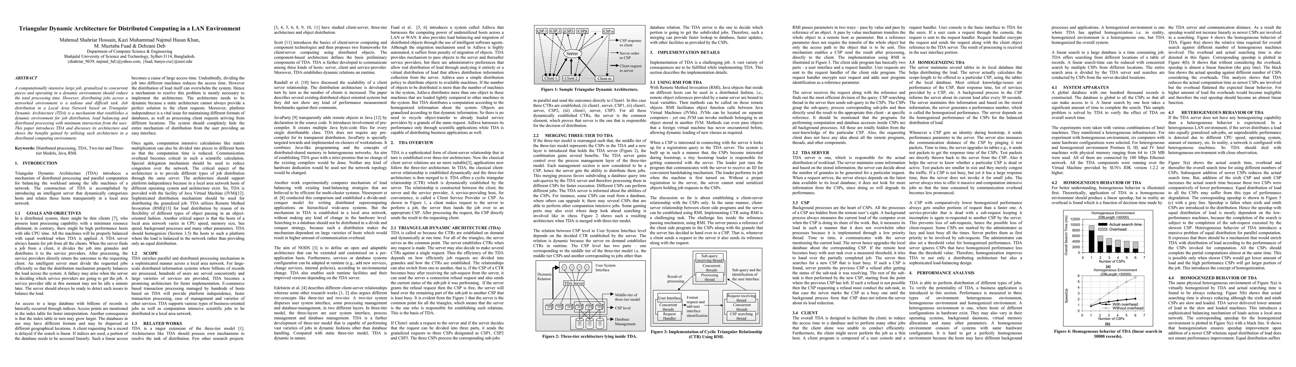 This paper introduces the Triangular Dynamic Architecture (TDA) for distributing computationally intensive tasks across a Local Area Network (LAN), aiming to reduce processing time through dynamic job distribution, load balancing, and minimal user intervention. The TDA framework enhances efficiency in distributed computing environments.