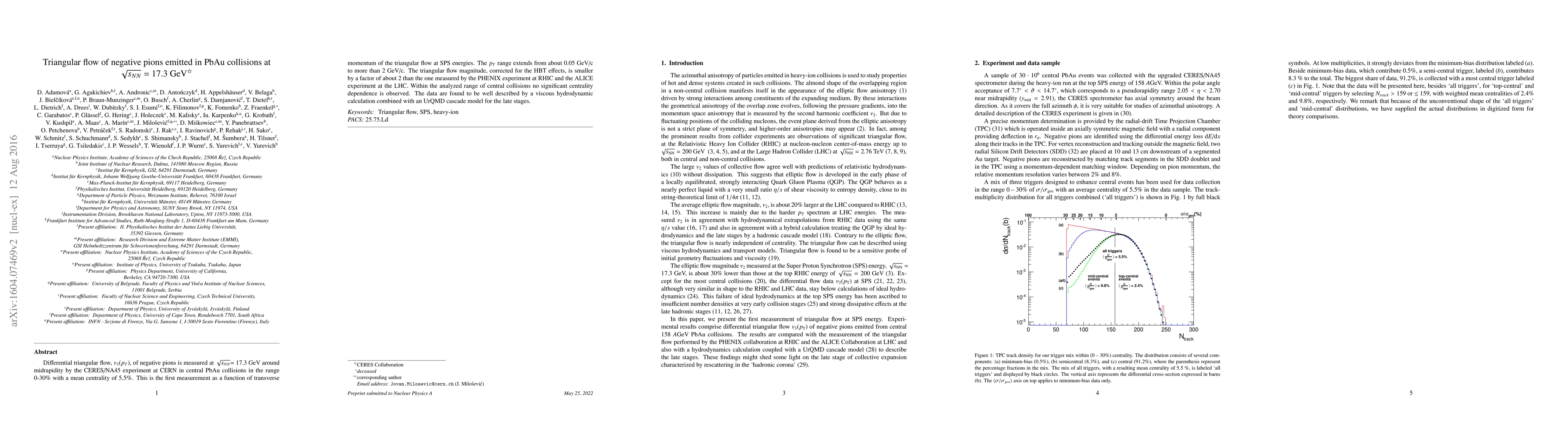 Researchers at CERN measured the triangular flow of negative pions in PbAu collisions at 17.3 GeV, finding it was smaller than previous measurements, with no centrality dependence observed within a specific range.