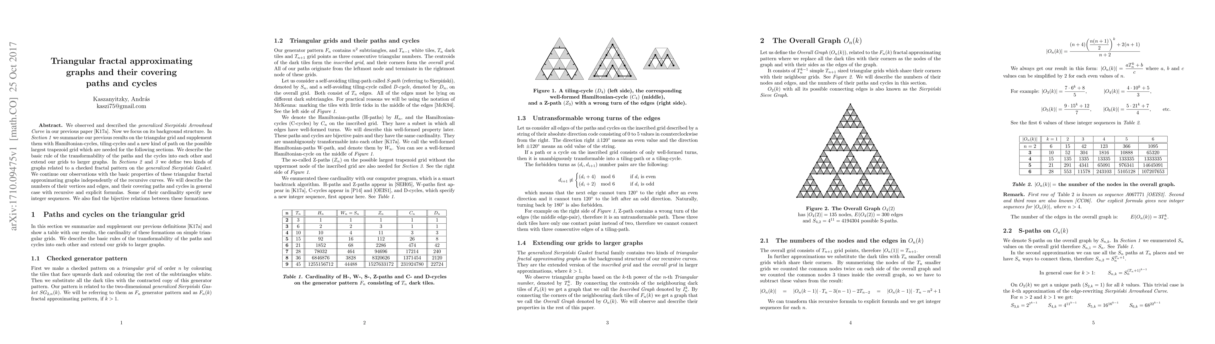 This paper investigates two types of fractal approximating graphs derived from the generalized Sierpinski Gasket, focusing on their structural properties and covering paths. It describes the cardinalities, vertex and edge counts, and Hamiltonian paths and cycles for both the Overall Graph and the Inscribed Graph, revealing new integer sequences and bijective transformations between them.