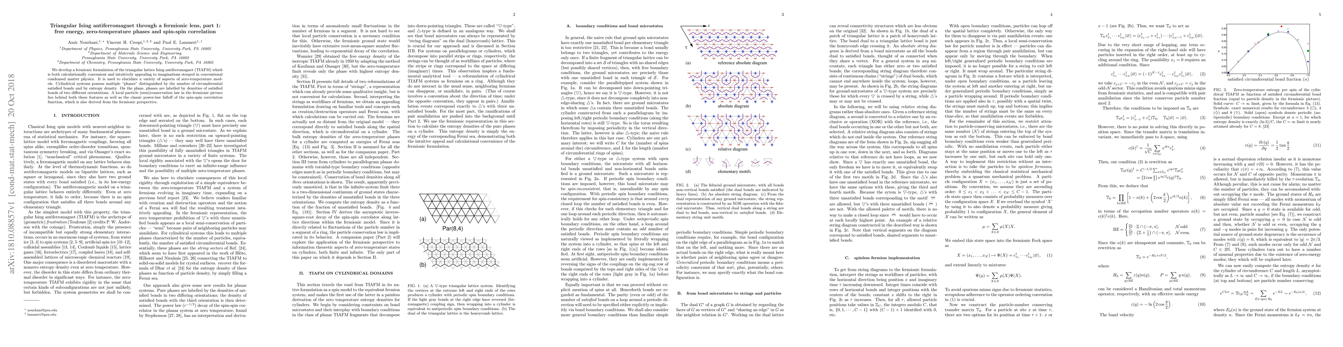 This paper introduces a fermionic formulation of the triangular lattice Ising antiferromagnet, elucidating zero-temperature phases and spin-spin correlations. It reveals multiple phases in cylindrical systems based on satisfied bonds and entropy density, and identifies phase distinctions in planar systems via bond densities of different orientations.
