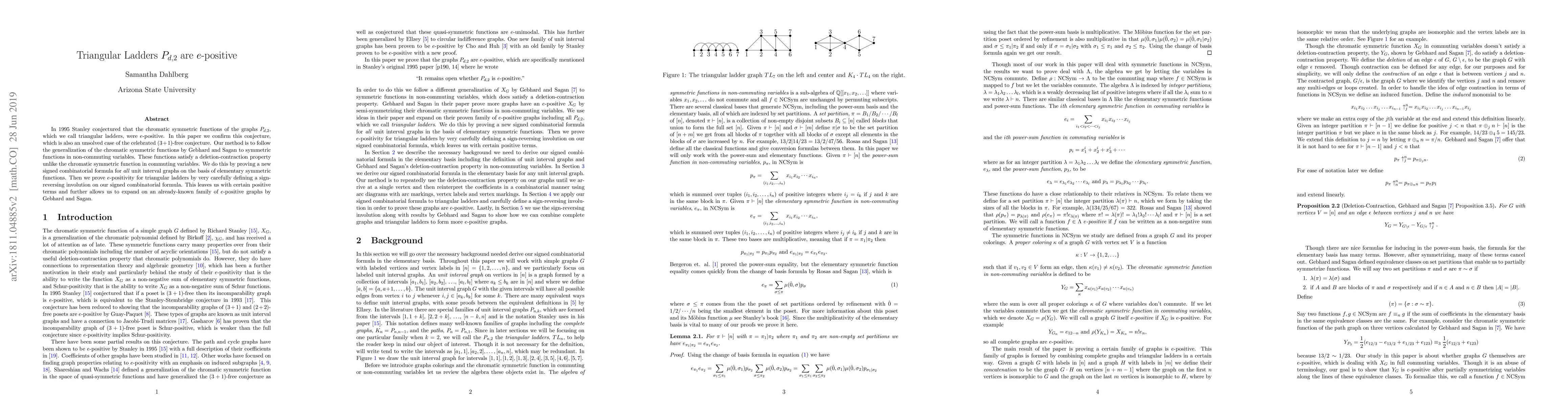 Researchers confirm the Stanley conjecture for triangular ladders $P_{d,2}$, proving they are $e$-positive, an unsolved case of a famous graph theory problem.