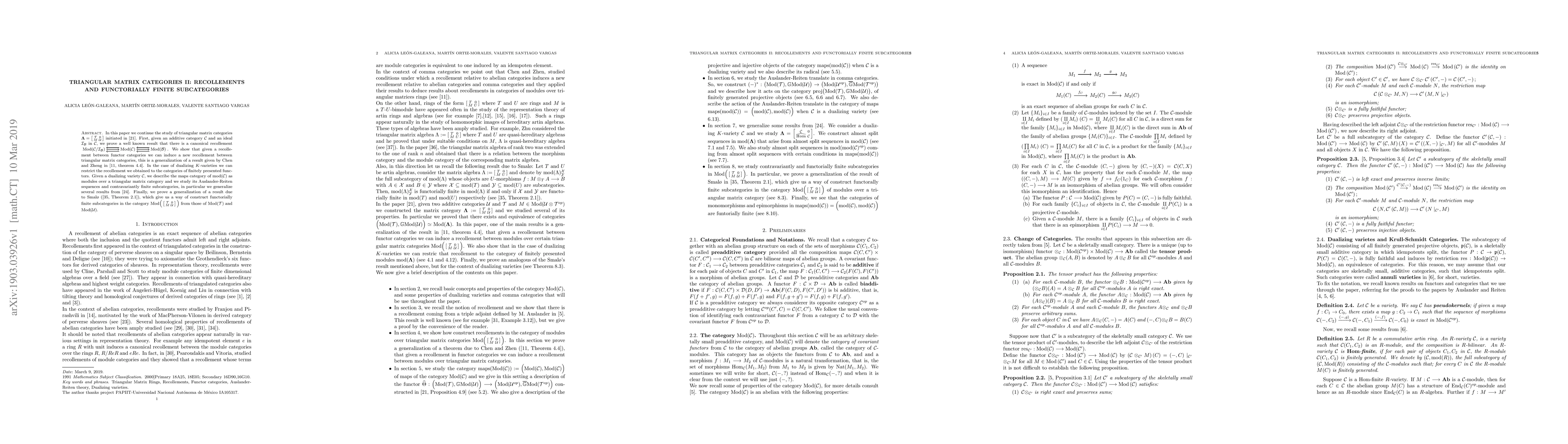 In this paper we continue the study of triangular matrix categories $\mathbf{\Lambda}=\left[ \begin{smallmatrix} \mathcal{T} & 0 \\ M & \mathcal{U} \end{smallmatrix}\right]$ initiated in [21]. First, given an additive category $\mathcal{C}$ and an ideal $\mathcal{I}_{\mathcal{B}}$ in $\mathcal{C}$, we prove a well known result that there is a canonical recollement $\xymatrix{\mathrm{Mod}(\mathcal{C}/\mathcal{I}_{\mathcal{B}})\ar[r]_{} & \mathrm{Mod}(\mathcal{C})\ar[r]_{}\ar@<-1ex>[l]_{}\ar@<1ex>[l]_{} & \mathrm{Mod}(\mathcal{B})\ar@<-1ex>[l]_{}\ar@<1ex>[l]_{}}$. We show that given a recollement between functor categories we can induce a new recollement between triangular matrix categories, this is a generalization of a result given by Chen and Zheng in [11, theorem 4.4]. In the case of dualizing $K$-varieties we can restrict the recollement we obtained to the categories of finitely presented functors. Given a dualizing variety $\mathcal{C}$, we describe the maps category of $\mathrm{mod}(\mathcal{C})$ as modules over a triangular matrix category and we study its Auslander-Reiten sequences and contravariantly finite subcategories, in particular we generalize several results from [24]. Finally, we prove a generalization of a result due to {Smal\o} ([35, Theorem 2.1]), which give us a way of construct functorially finite subcategories in the category $\mathrm{Mod}\Big(\left[ \begin{smallmatrix} \mathcal{T} & 0 \\ M & \mathcal{U} \end{smallmatrix}\right]\Big)$ from those of $\mathrm{Mod}(\mathcal{T})$ and $\mathrm{Mod}(\mathcal{U})$.