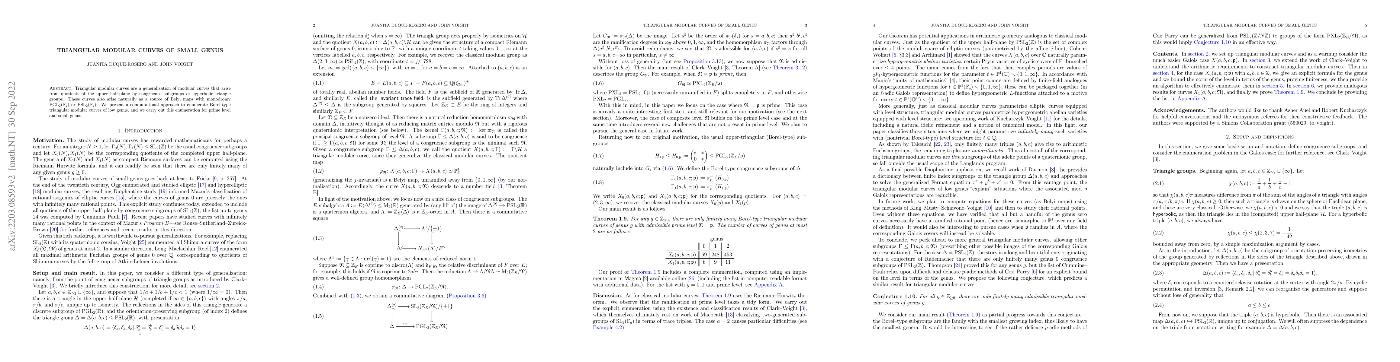 The paper presents a computational method for enumerating Borel-type triangular modular curves of low genus, focusing on those arising from prime level congruence subgroups and small genera. It explores their significance as sources of Belyi maps with specific monodromy groups.