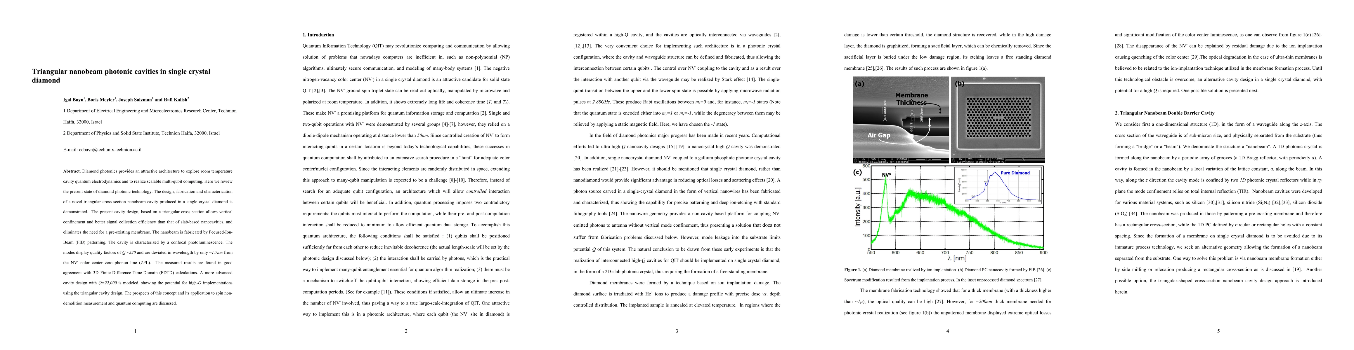 This paper reviews the state of diamond photonic technology, demonstrating a novel triangular nanobeam cavity in single crystal diamond that enhances signal collection efficiency and achieves high-Q factors (~220). The advanced design shows potential for scalable multi-qubit computing and spin non-demolition measurement.