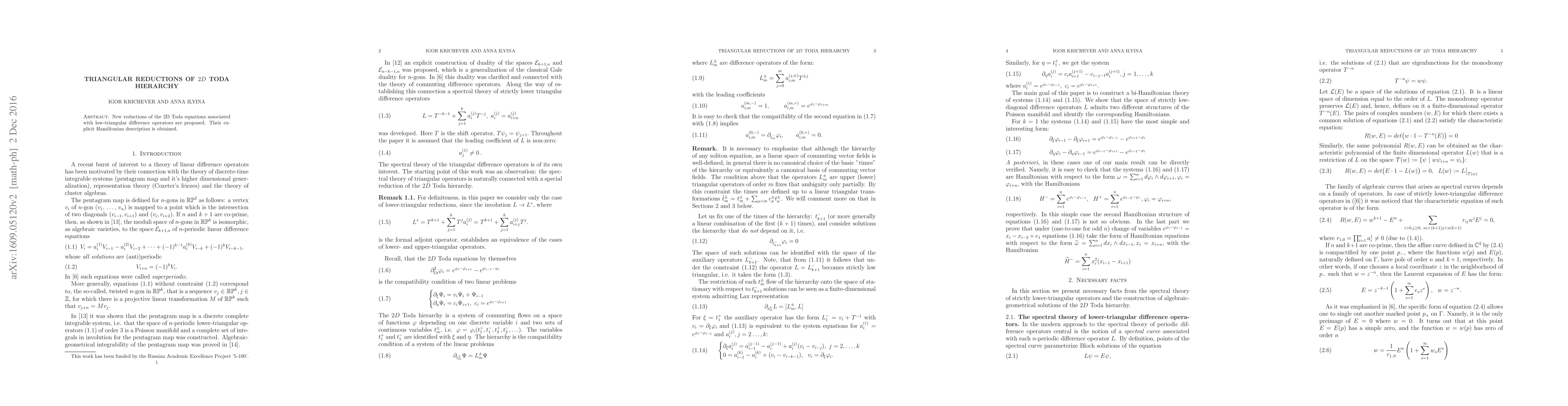 New reductions of the 2D Toda equations associated with low-triangular difference operators are proposed. Their explicit Hamiltonian description is obtained.