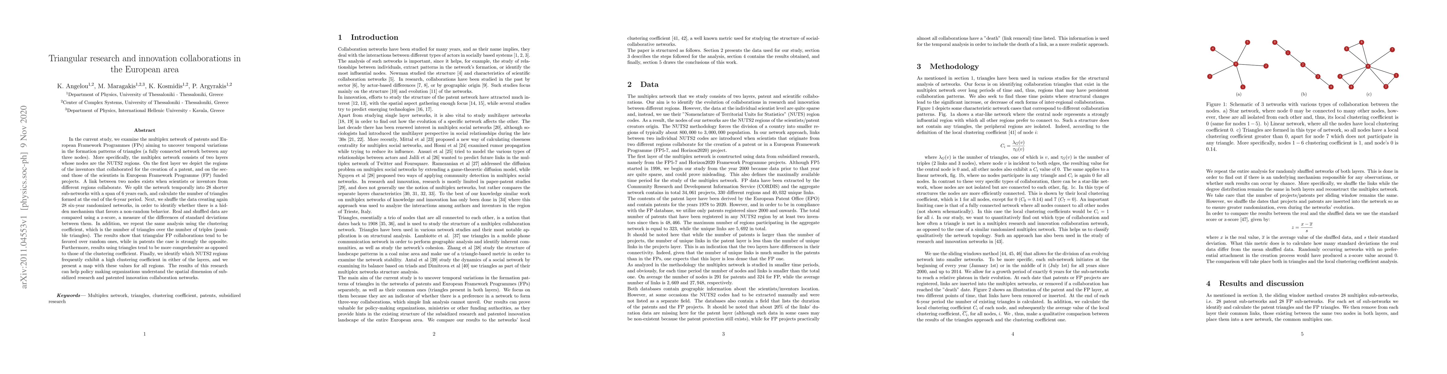 This study investigates the temporal variations in triangular collaborations within European innovation networks, comparing patent collaborations and European Framework Programme projects. It finds that triangular collaborations in FPs are non-random, while patents show the opposite trend, highlighting the spatial dimension of subsidized research versus patented innovation.