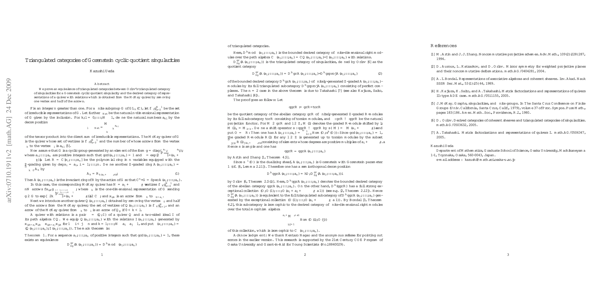 Summary: This paper establishes an equivalence between the triangulated category of singularities for Gorenstein cyclic quotient singularities and the derived category of certain representations of a modified McKay quiver, obtained by deleting one vertex and half the arrows.