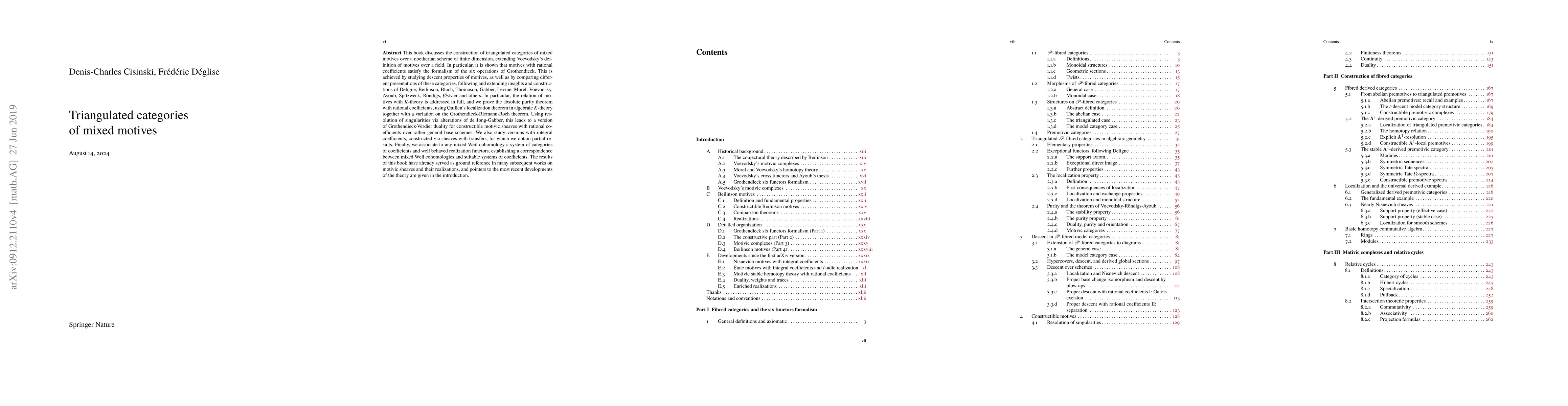 This book develops triangulated categories of mixed motives over noetherian schemes, extending Voevodsky's motives definition and establishing the formalism of six operations. It establishes Grothendieck-Verdier duality and proves the absolute purity theorem with rational coefficients, significantly advancing the study of motivic sheaves and their realizations.
