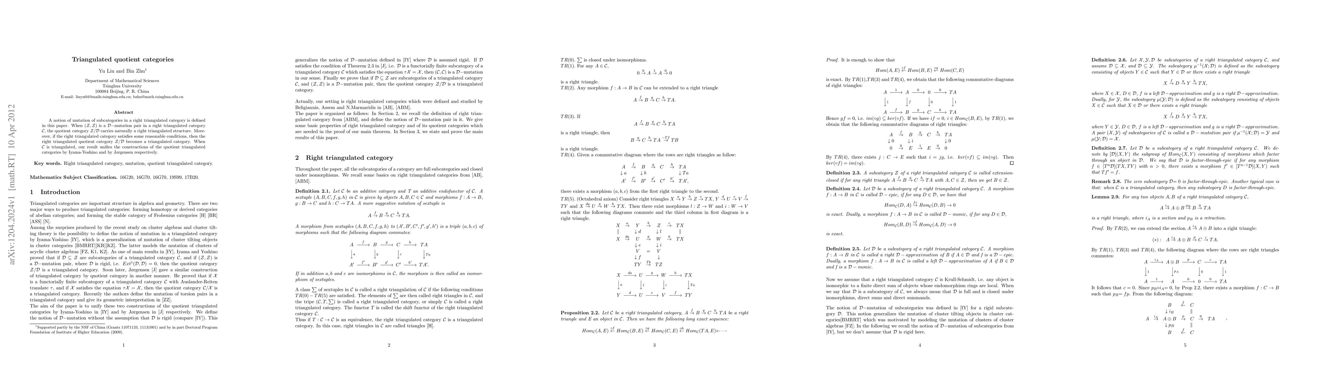 The paper presents a novel approach to defining mutations of subcategories in right triangulated categories and proves that quotient categories inherit triangulated structures under specific conditions.