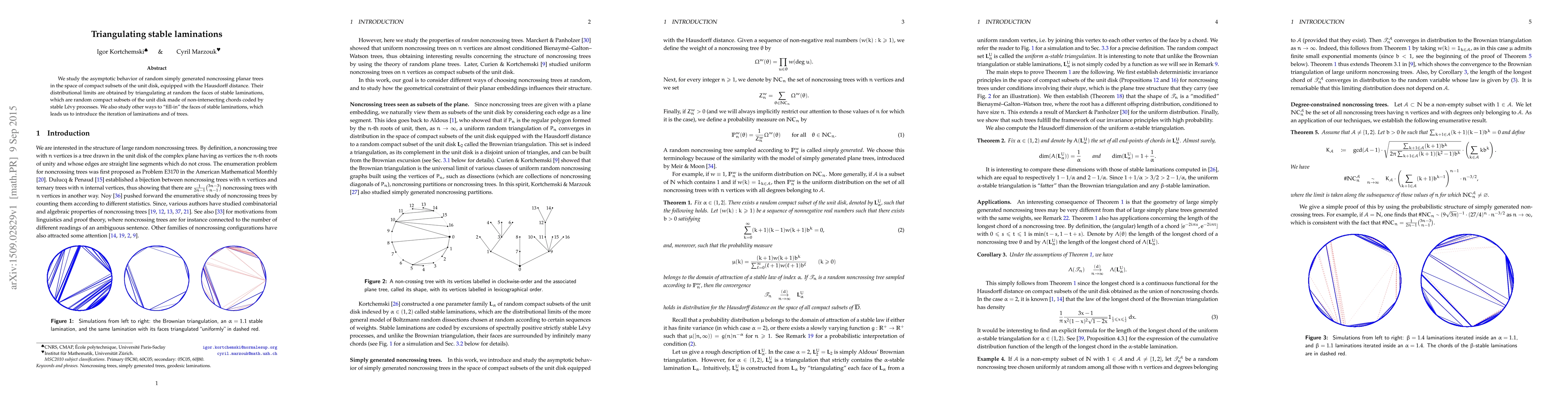 The paper employs the study of asymptotic behavior of random simply generated noncrossing planar trees and their distributional limits, obtained by triangulating at random the faces of stable laminations coded by stable Lévy processes.
