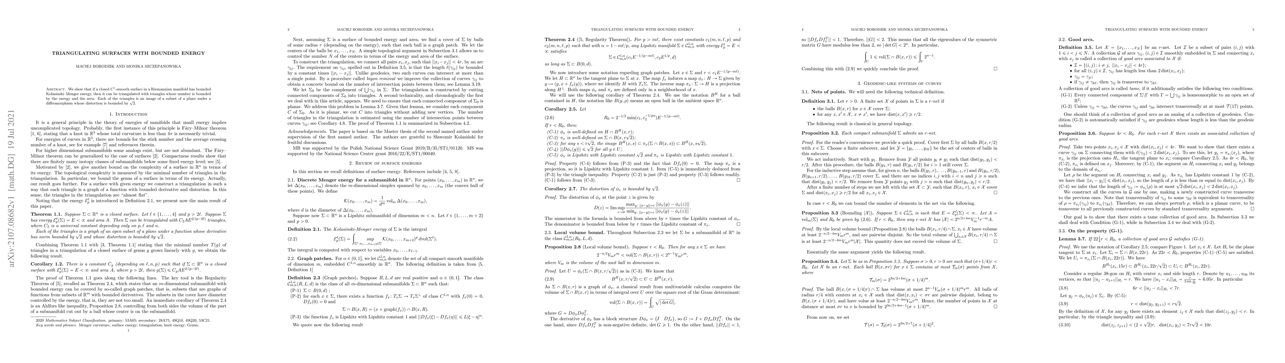 We show that if a closed $C^1$-smooth surface in a Riemannian manifold has bounded Kolasinski--Menger energy, then it can be triangulated with triangles whose number is bounded by the energy and the area. Each of the triangles is an image of a subset of a plane under a diffeomorphism whose distortion is bounded by $\sqrt{2}$.