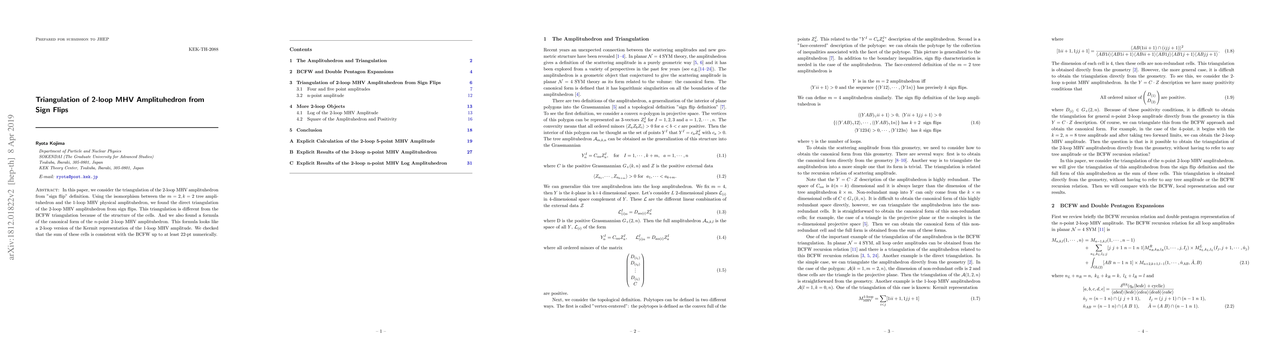 The novelty lies in the direct triangulation method from sign flips, which differs from the BCFW triangulation, and in deriving a formula for the canonical form of the 2-loop MHV amplituhedron, resembling the Kermit representation of 1-loop MHV amplitude.