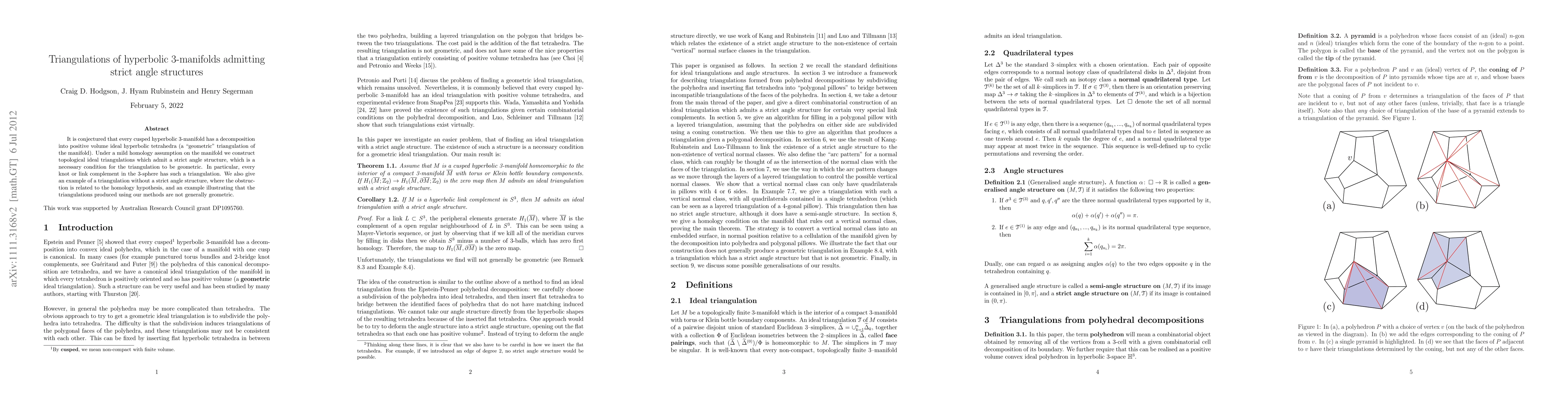 This paper constructs topological ideal triangulations for cusped hyperbolic 3-manifolds under a mild homology assumption, which admit strict angle structures, a necessary condition for geometric triangulation. It also provides examples showing that not all such triangulations are geometric.