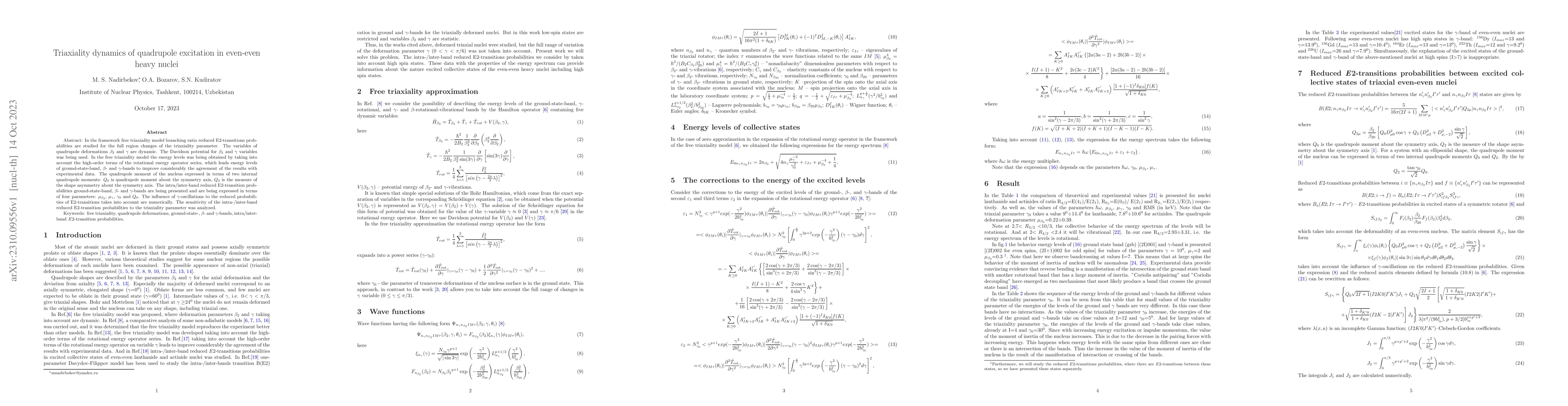 This paper investigates the dynamics of quadrupole excitation in even-even heavy nuclei using a free triaxiality model, focusing on the branching ratios and E2-transition probabilities across varying triaxiality. The study employs the Davidson potential and high-order rotational energy terms to improve the agreement with experimental data, analyzing the influence of $\gamma$-oscillations on transition probabilities.