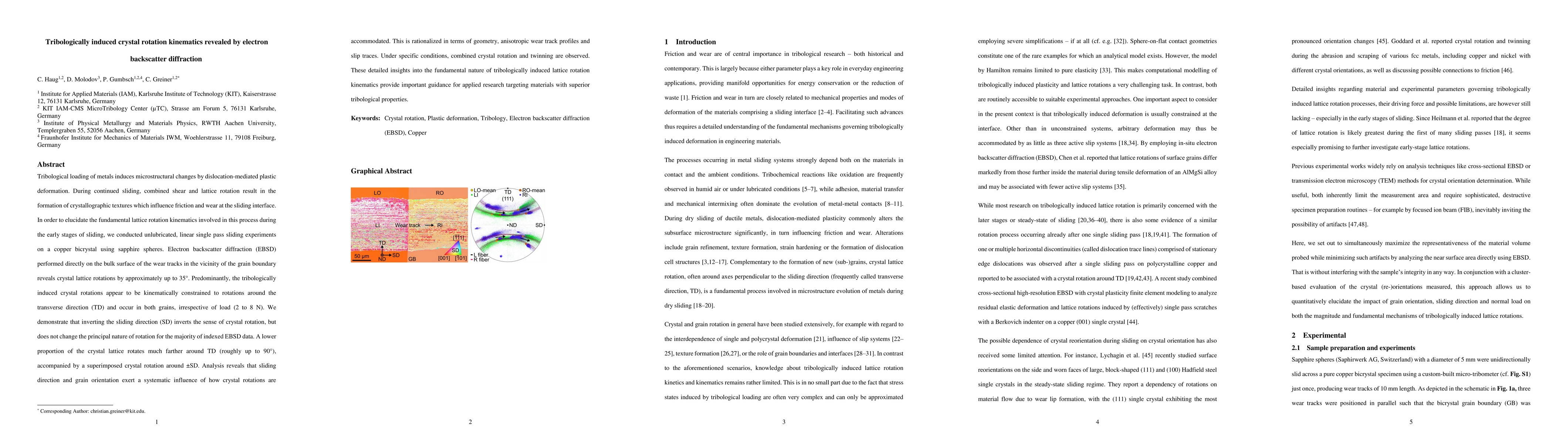 This research provides detailed insights into tribologically induced crystal rotation kinematics, which can guide future applied research in developing materials with superior tribological properties.