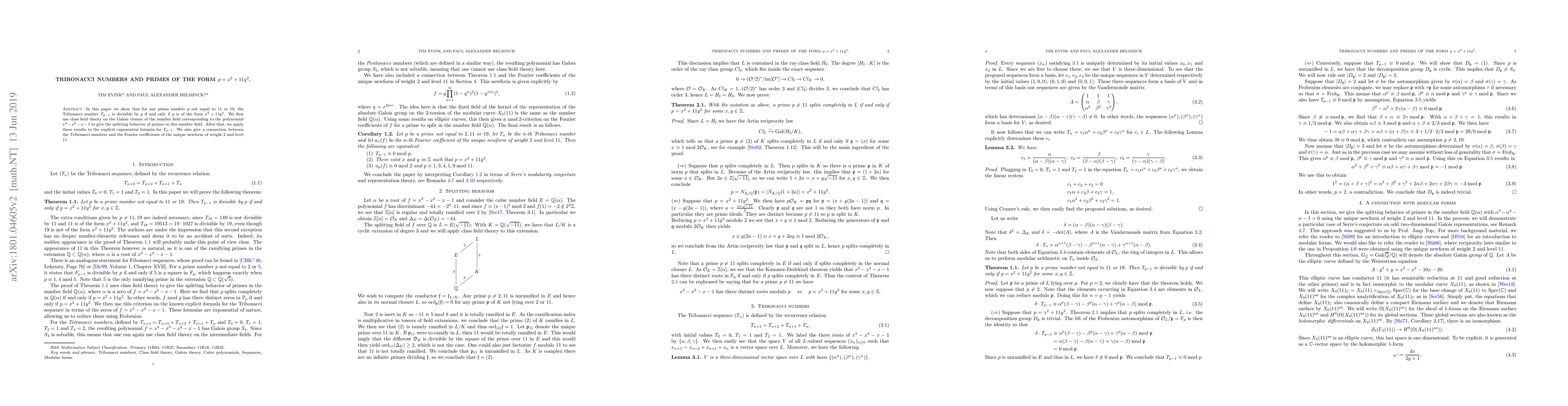 This research bridges number theory concepts such as Tribonacci numbers and primes of the form $x^2 + 11y^2$, providing insights into the algebraic structures underlying these sequences and primes.