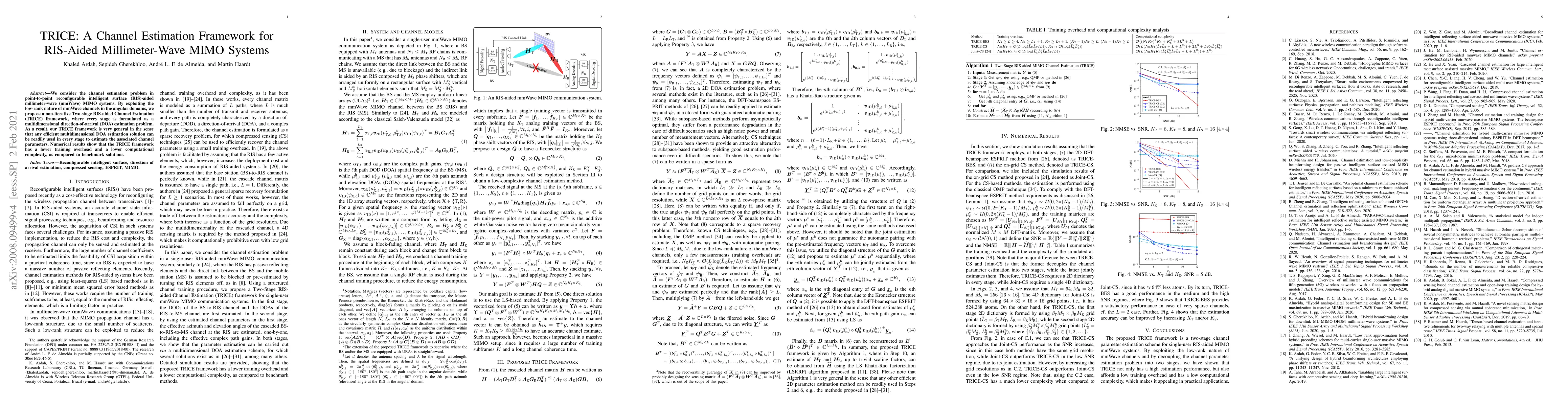 The TRICE framework proposes a non-iterative method for channel estimation in RIS-aided mmWave MIMO systems, leveraging the low-rank nature of mmWave channels. It achieves lower training overhead and computational complexity compared to benchmark solutions.
