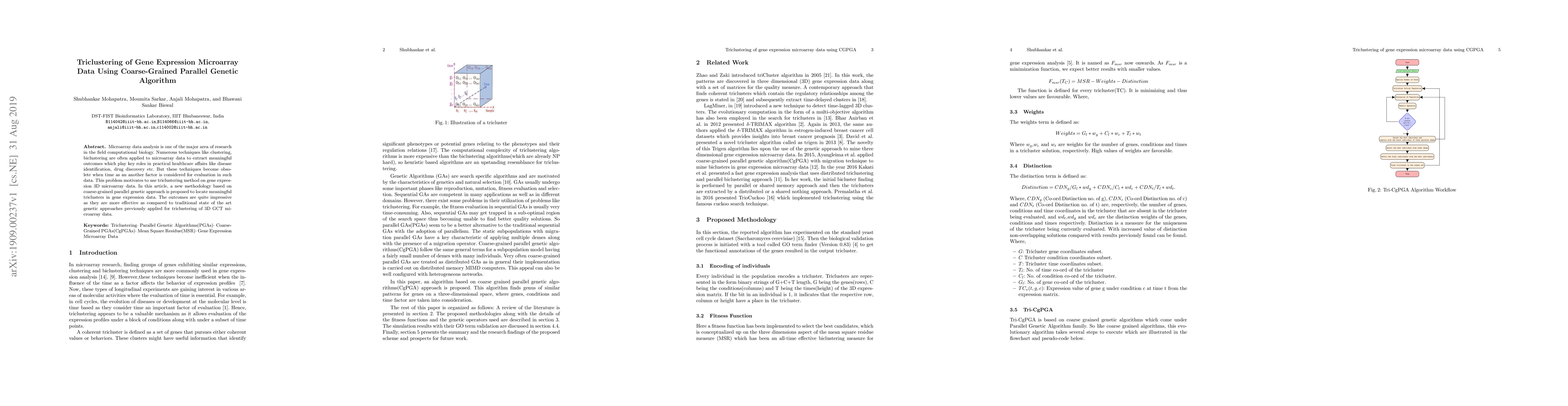 A new methodology based on coarse-grained parallel genetic algorithm (Tri-CgPGA) is proposed for triclustering gene expression 3D microarray data, which outperforms traditional genetic approaches.